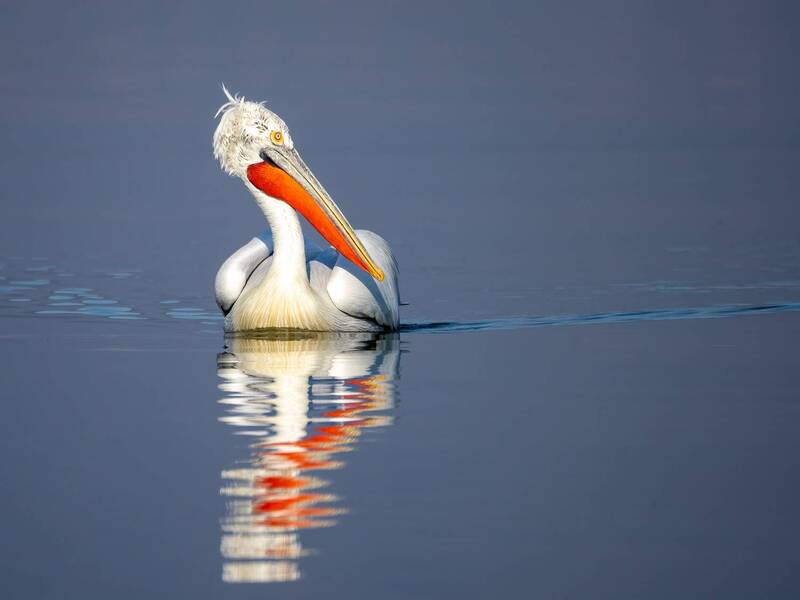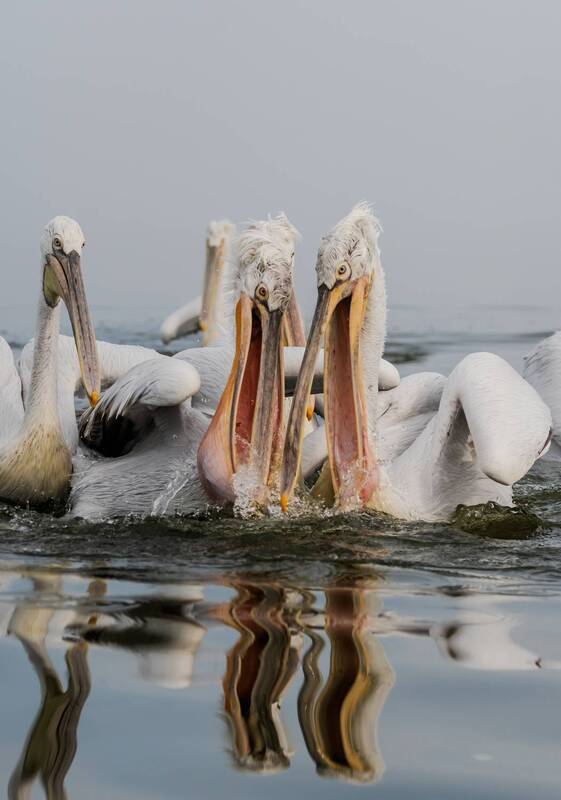 In a striking black and white photograph, two pelicans stand facing each other, mirroring one another with almost perfect symmetry. Their long, curved beaks and elegant necks create a harmonious balance, as if they are twins engaged in silent conversation. The monochrome tones emphasize the texture of their feathers, the sharp contrast between light and shadow accentuating every detail. Their eyes, focused and intense, seem to hold a quiet understanding, while the negative space around them enhances the intimacy of their shared moment. The composition is both simple and profound, capturing the grace and quiet connection between these majestic birds.