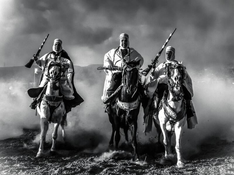 Événement culturelle Algérienne des chevauchés avec des pures sang arabe compétition de course chaque tribus cherche a être au premier avec des beaux costume et fusil d un beau guerrier