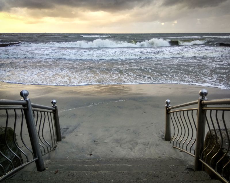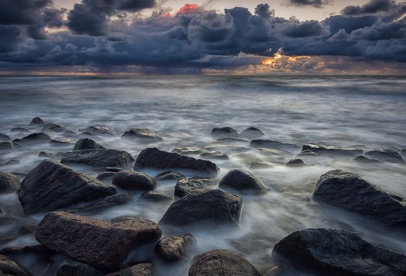 Фото снято в октябре 2017 года на Балтийском побережье недалеко от мыса Таран в Калининградской области. Небо затягивало и уже накрапывал дождь, а заходящее солнце еще пыталось пробиться сквозь тучи.