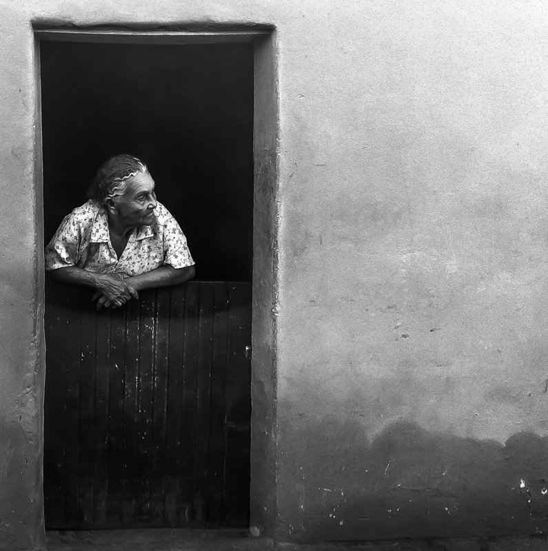 I travelled to the northeast Brazil to record a movie, through the window of the van, I saw a curious lady looking at the film crew working, she watched everyone smile and hide.