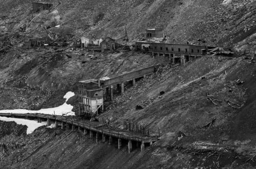 Фотографии сделаны 28.06.2019 в запретной для посещения зоне лагерного отделения (Старый город, название местное). На фотографиях изображены остатки лагерного городка ГУЛАГа - Месторождение медно-никелевой руды в урочище Медвежий ручей было обнаружено геологами А.Е. Воронцовым и А.Н. Розановым в 1936 году, а в 1938-1944 гг. коллективом геологической службы Норильского комбината была произведена детальная разведка рудного тела. По результатам детальной разведки было принято решение о строительстве рудника. В условиях полярной ночи, зимы, продолжительностью 9 месяцев, сильных морозов, частых снегопадов и метелей, было принято непростое и рискованное решение начать добычу руды открытым способом, для чего в 1945 году был создан РОР (сокр. Рудник открытых работ) – предшественник рудника «Медвежий ручей». Тогда-же было принято решение и о строительстве четырёх бараков будущего лагпункта «Медвежий ручей», что, условно говоря, можно и считать датой основания посёлка Медвежий.