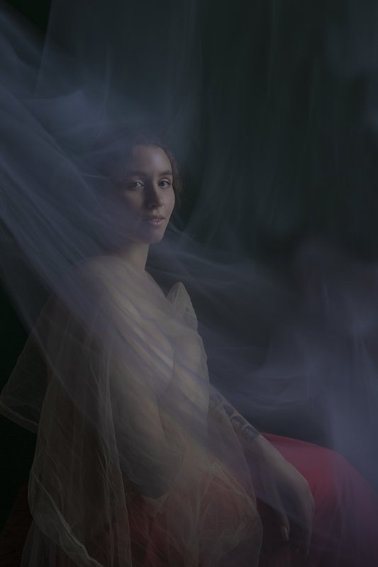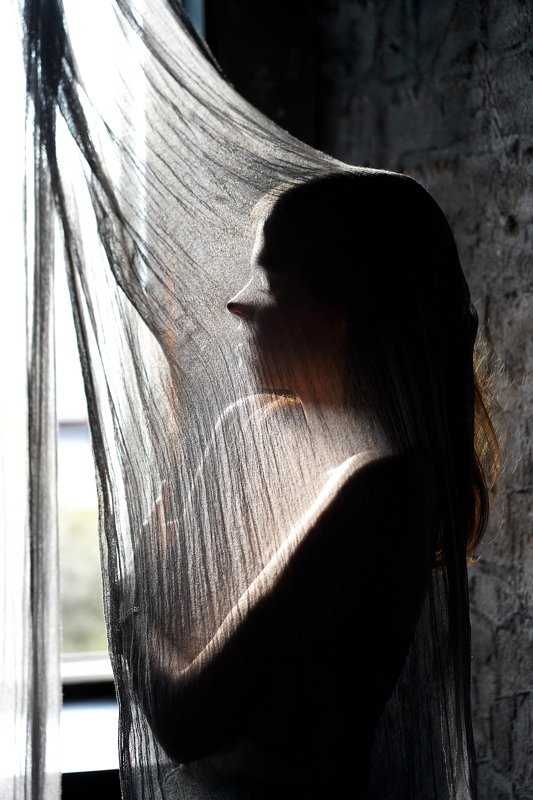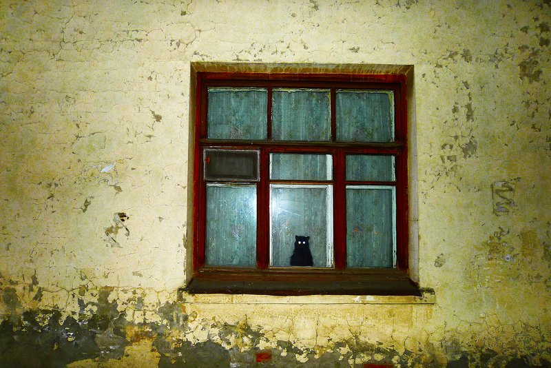 Однажды утром, когда я ехал на работу, я заметил неприметное ветхое здание в одном из районов города Чебоксар. В окне выделялось черное пятно, мне показалось это интересным, и чтобы выделить силуэт образа, решил использовать вспышку фотоаппарата. Она смотрела сквозь стекло и наблюдала за жизнью по ту сторону.