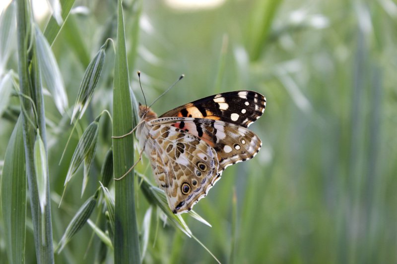 Трогает колосья