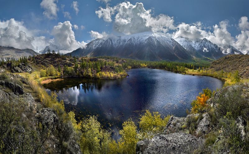 Восход луны в г. Железногорске Красноярского края. Город является ЗАТО (закрытым административно-территориальным образованием). Он расположен в отрогах Саянских гор, на берегу искусственно созданного озера, в окружении дикой тайги.