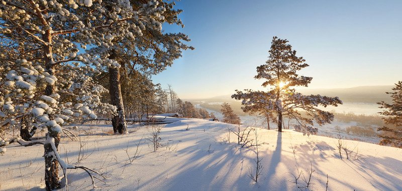 С одной стороны, мы с Вами наблюдаем восхитительный зимний закат, а с другой, это же самое солнце подсвечивает клубы едкого дыма, которые распространяются от ближайшего завода - загрязнителя.