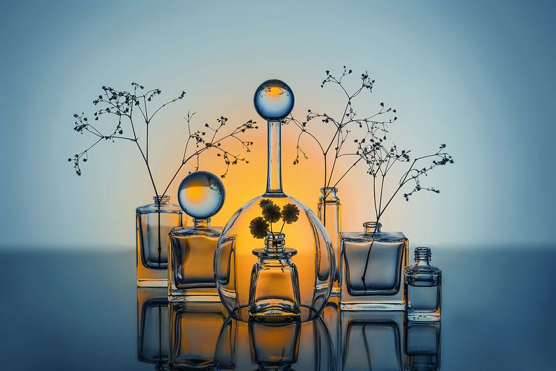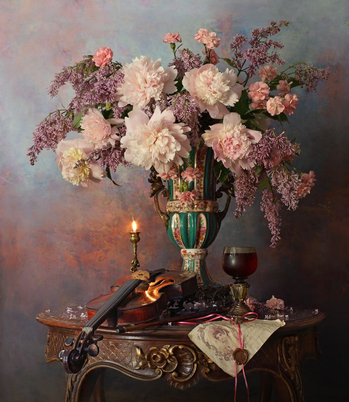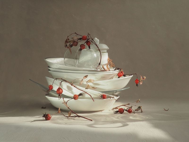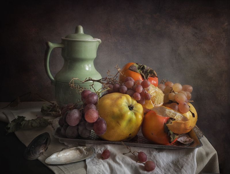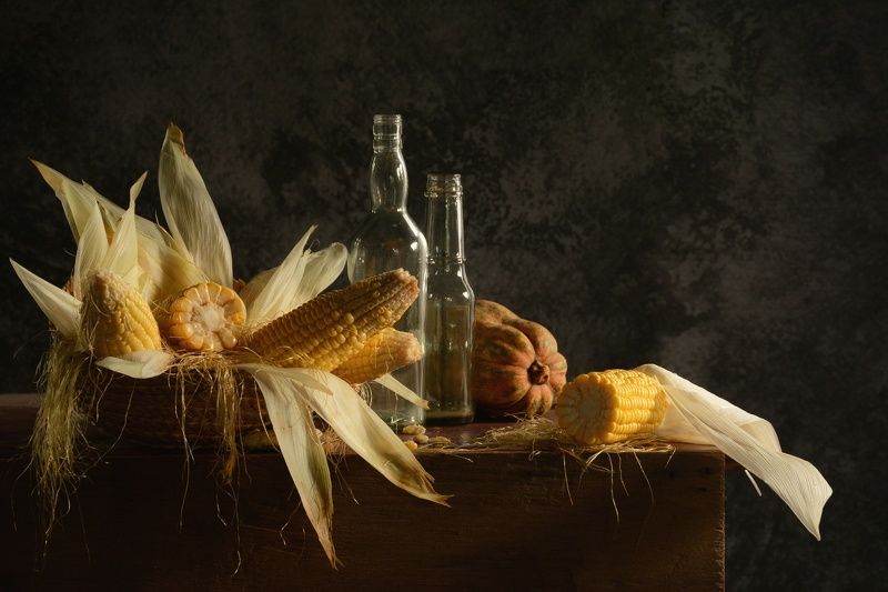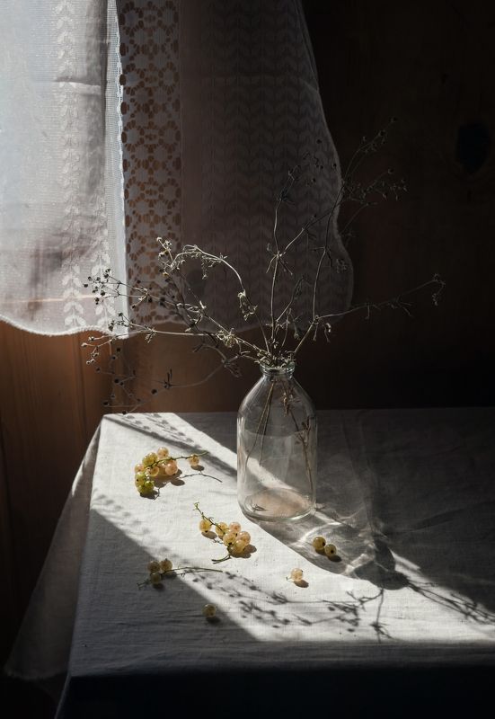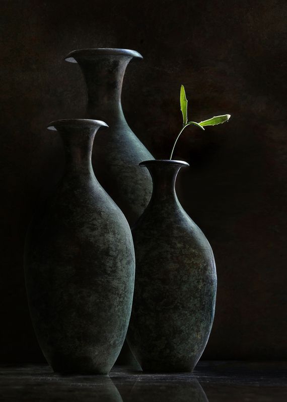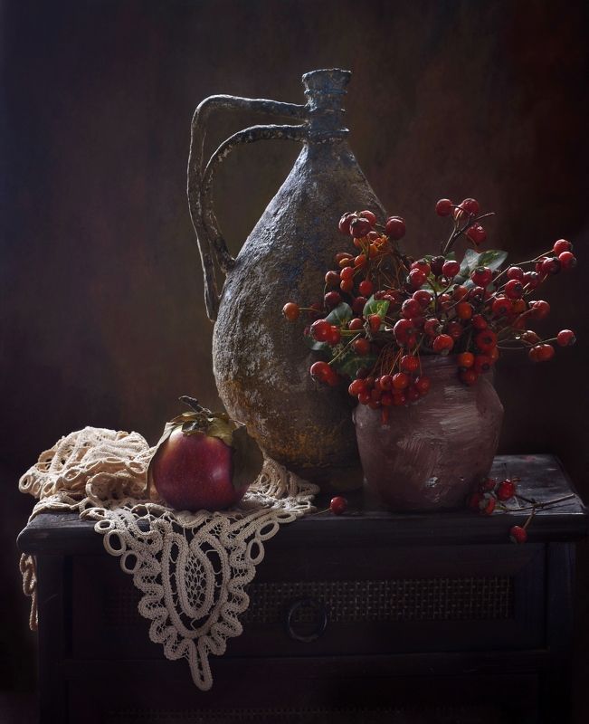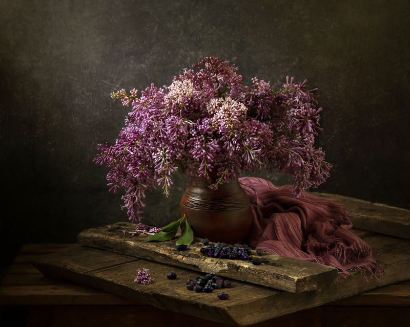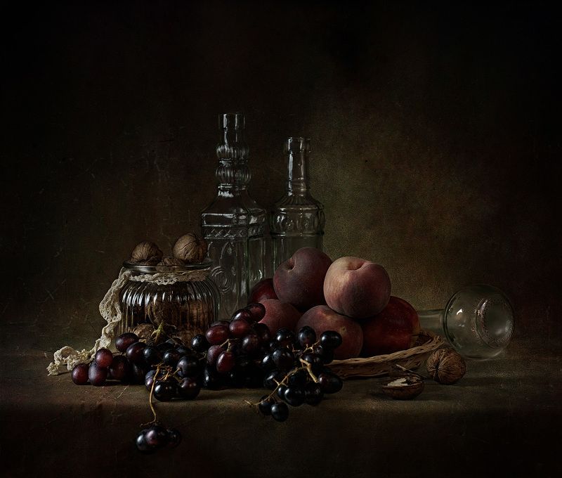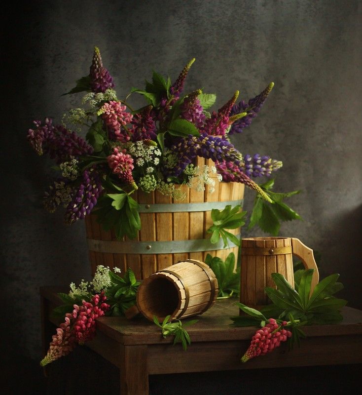 Эту композицию я собирала из зрелых и увядающих подсолнухов. Подобно тому, как стареющая женщина грустит, глядя на свое отражение в зеркале, мои подсолнухи склонили грустные головы и ни один из них не смотрит на зрителя. Они печалятся о том, что их лепестки уже не так упруги и пышны, как в дни юности. А зритель видит красоту в этом увядании, видит созревшие семена - то, что эти цветы оставят после себя. И этот натюрморт - мой призыв не бояться естественного хода вещей, не бояться возрастных изменений внешности, ведь в человеке, как и в цветке, красоту можно разглядеть вне зависимости от его возраста