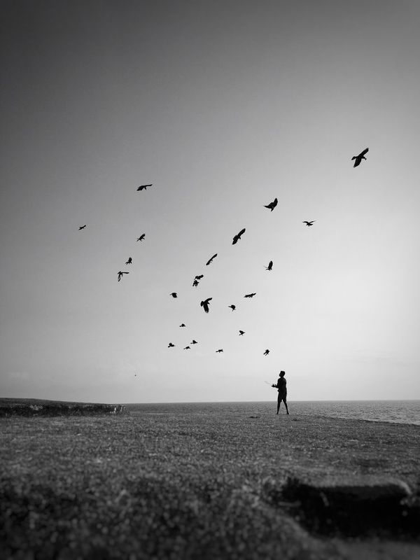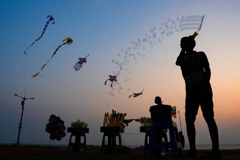 Under the painted canvas of a vibrant sunset sky, a silhouette emerges against the fading light. A soap ball vendor weaves magic, skilfully manipulating soap balls to enchanting tunes. As the evening breeze dances with kites above, his captivating performance draws in curious onlookers, casting a spell of wonder and delight on the bustling Galle Face promenade in Colombo, Sri Lanka.