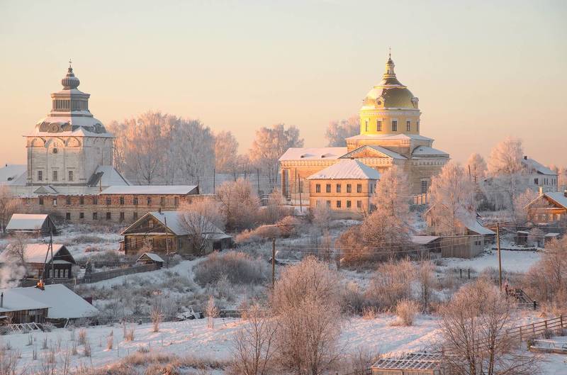 Зимняя радуга с куполами церкви создала особую атмосферу морозного денька на реке Ивкине. В древних верованиях радуга считается символ между человеческим миром и божественным. Это священный знак, предвестник благополучия. Нижнеивкино, Кировская область