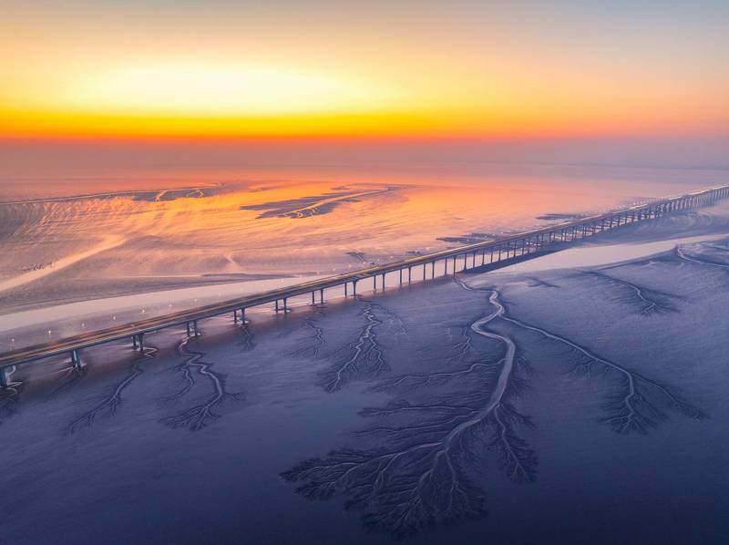 I woke up at 4am just to capture this sunrise. The sun\'s position calculated one month in advance was very accurate, and the weather was also great, which led to this artwork. When the sun rises from behind the model as promised, this scene in the same frame, with a 600mm ultra long focus, is really beautiful!