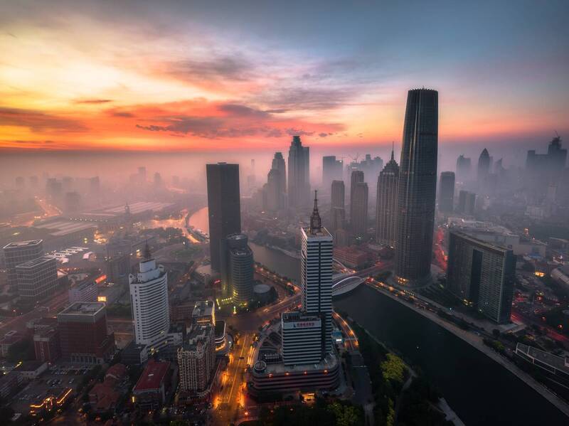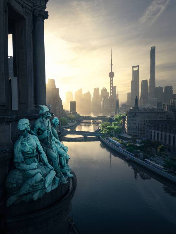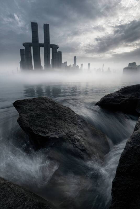 This is a photo taken in Chongqing. I went down to the riverside to explore the location, using the flowing water and rocks in the foreground and Chongqing\\\'s iconic Raffles City as the background to take this photo.