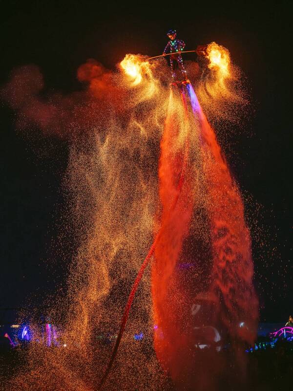 Under the night sky, raging flames rise and roll like a giant fire curtain, with a blazing light piercing through the darkness. A figure dressed in red and wearing a bamboo hat stood resolutely in front of the sea of fire, holding a long pole. The confrontation between humans and fire is like a confrontation of power, and also like an ancient and mysterious dialogue, bursting out with stunning visual impact and artistic tension that shakes the soul.