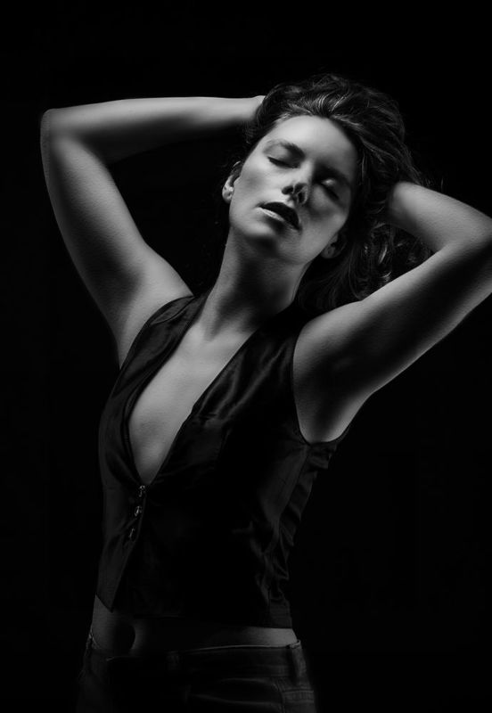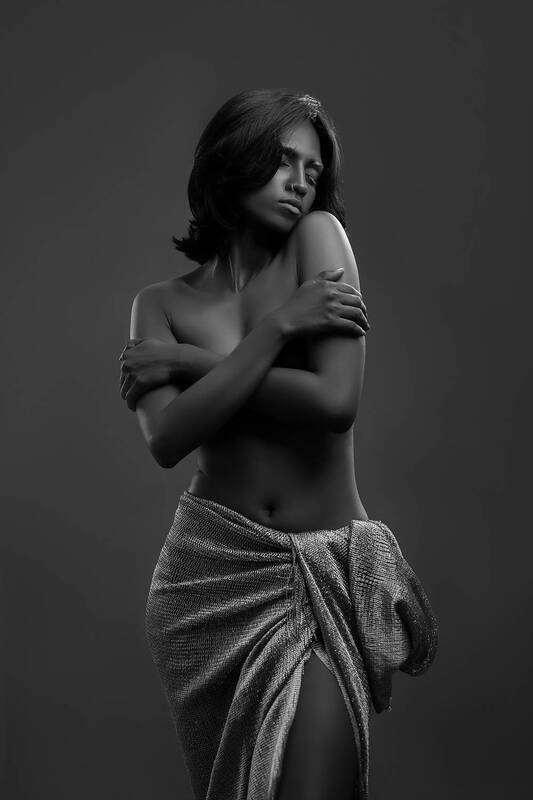 A sensual female portrait capturing the elegance and allure of feminine beauty, emphasizing soft curves and intimate expressions with a delicate interplay of light and shadow.