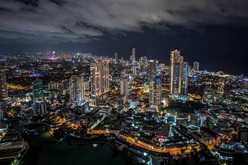 Amidst the chaotic pulse of Colombo\'s bustling streets, a Buddhist monk walks with quiet grace, draped in vivid crimson robes that stand in stark contrast to the monochrome urban landscape. The intricate web of neon signs, tangled wires, and hurried pedestrians frame his journey-an embodiment of tranquility moving through the currents of commerce and modernity.