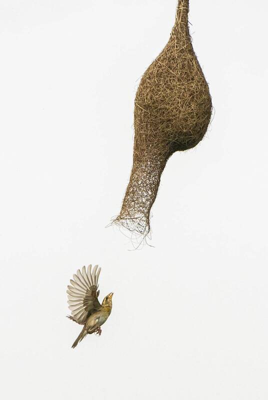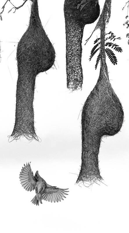 In this captured moment, two male Baya weavers (Ploceus philippinus) engage in a fierce battle, each determined to defend his nest—their cherished creation. With their futures on the line, they fend off rivals, knowing that the nest holds the key to winning a mate.