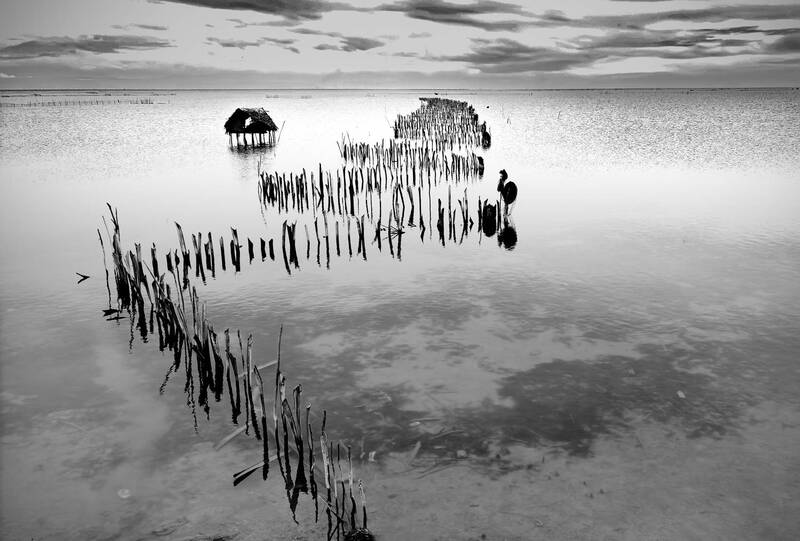This shot was taken Jaffna, Srilanka. in this picture we can see a long line way. seems like a design fence. that was a method to use catching Prawn/ fish. this type of methods mostly use in this area for catching prawns and fishes.