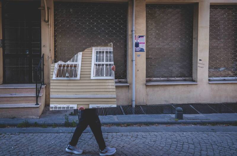 This captivating photo, taken in Mudurnu, Turkey. This shot can present the essence of a traditional Turkish barbershop. Through the wooden-framed glass window, an elderly barber carefully shaves an older man, creating a nostalgic and intimate scene.