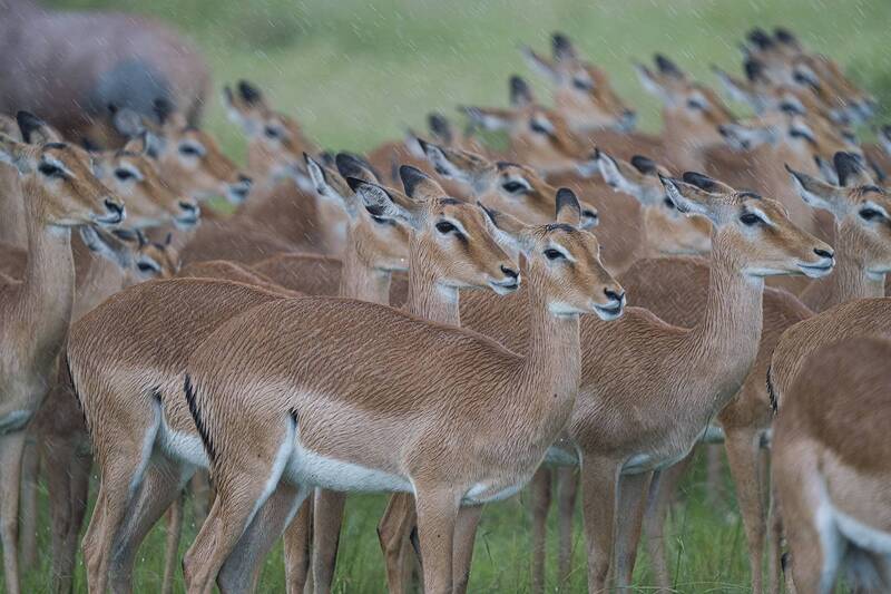 African Forest Elephants are the elusive cousins of the better-known African savanna elephants. They inhabit the dense rainforests of west and central Africa. African Forest Elephants are much more agressive than their savanna cousins, especially outside the safety of their forest home. As soon as this mother elephant spotted our vehicle, she started to run at is in a (mock) charge. Her calf had difficulty getting out of her way. Satisfied with sending us her message, the pair disappeared into their dense forest home, where vehicles cannot follow.