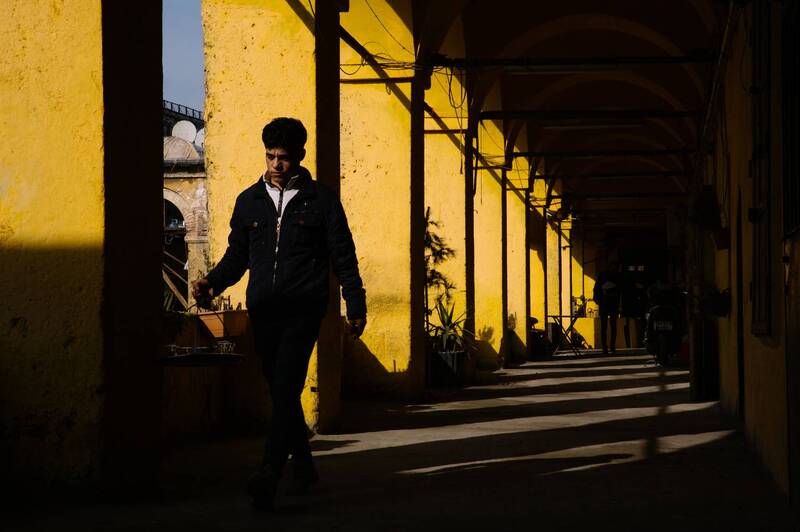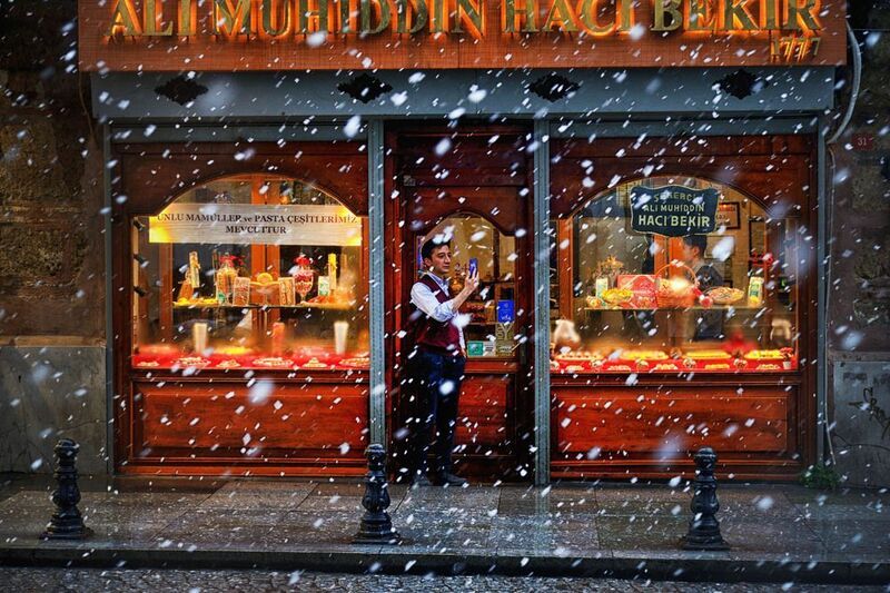 The shop’s signage, featuring the name "Berber Ahmet Gündüz," and the "Açık" (Open) sign add to the authentic, vintage feel.