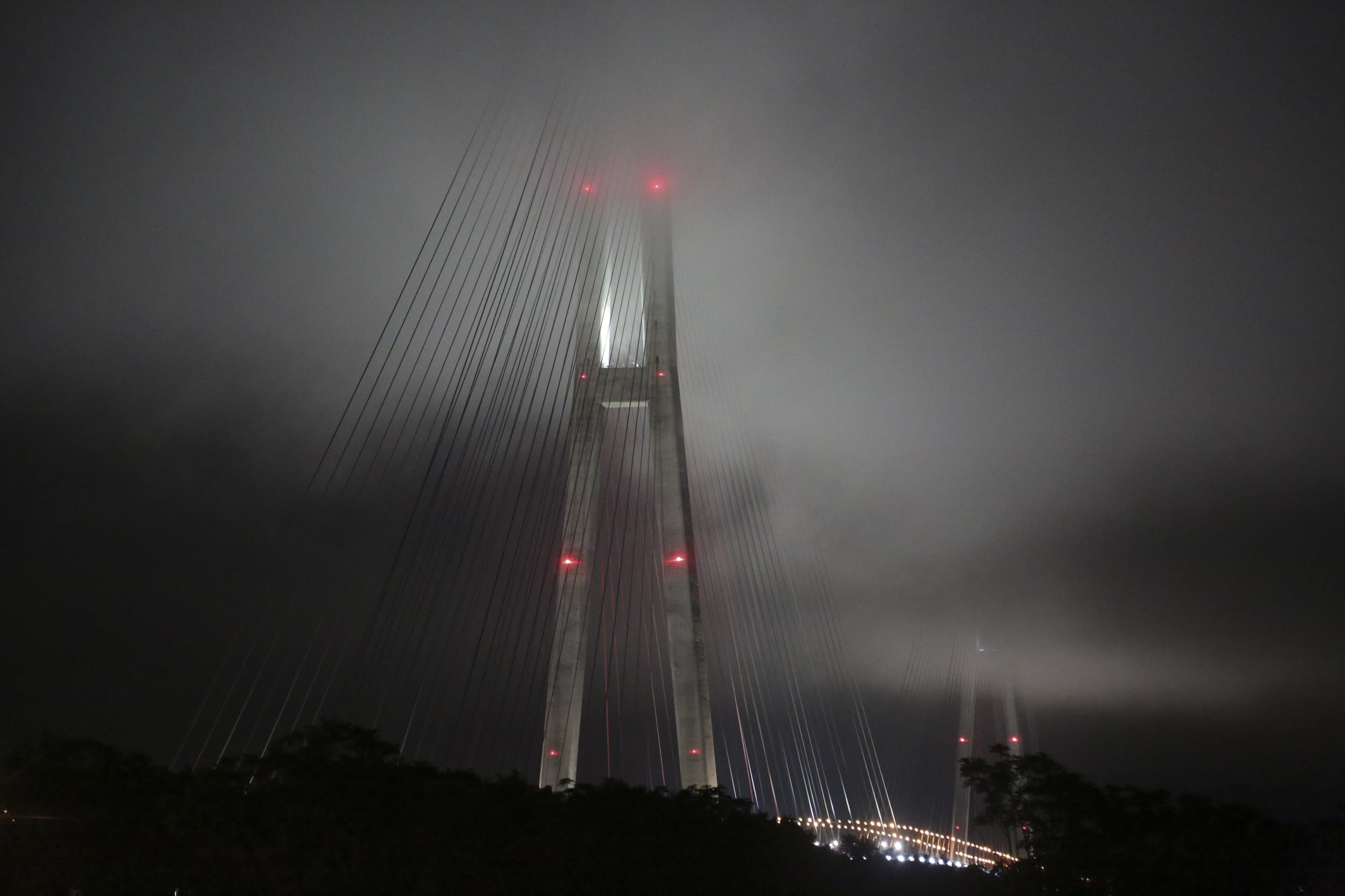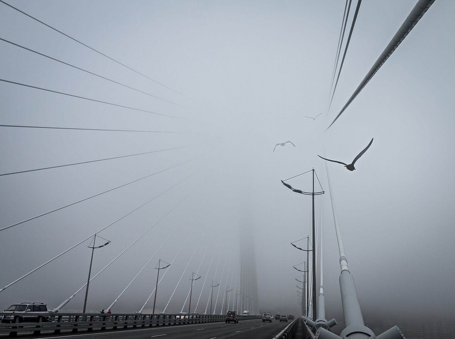 Владивосток, Золотой мост через бухту Золотой Рог. Типичный владивостокский июльский туман.