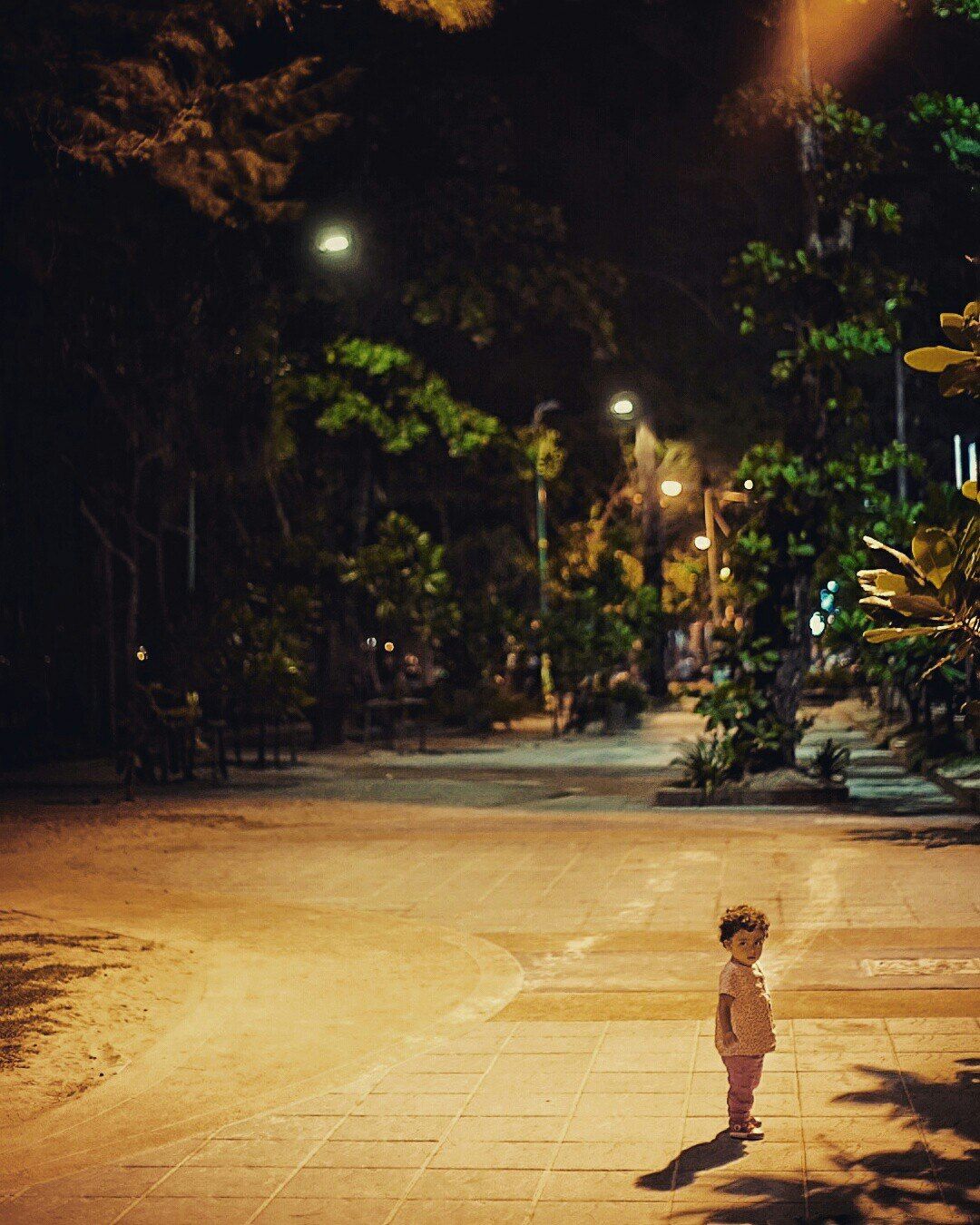 Одинокий мальчонка бродит по набережной у пляжа