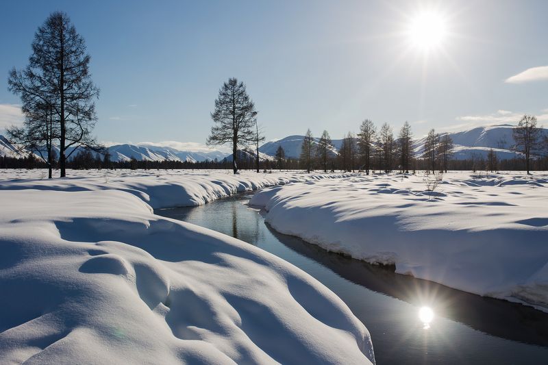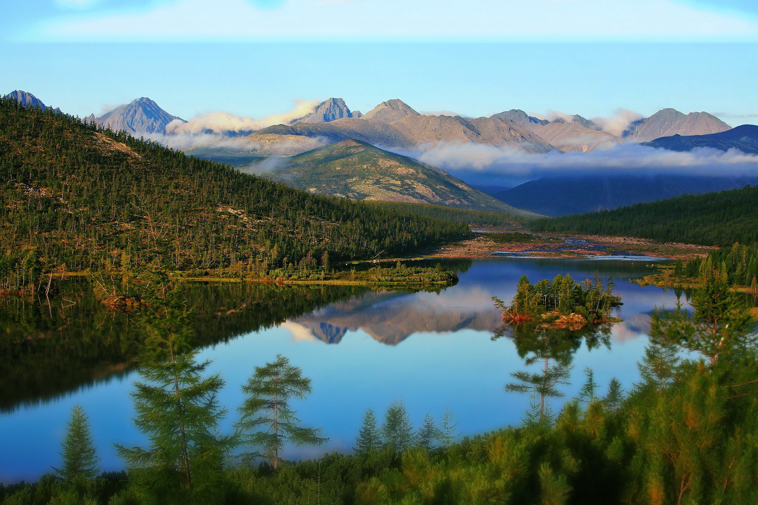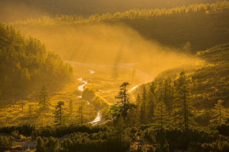 Место съемки: Магаданская область. Озеро Танцующих Хариусов. На дальнем фоне хребет Большой Аннгачаг.