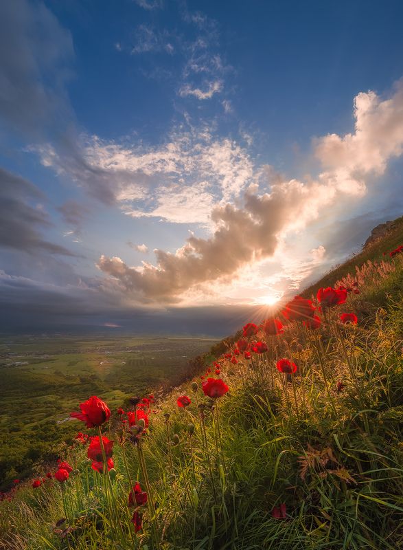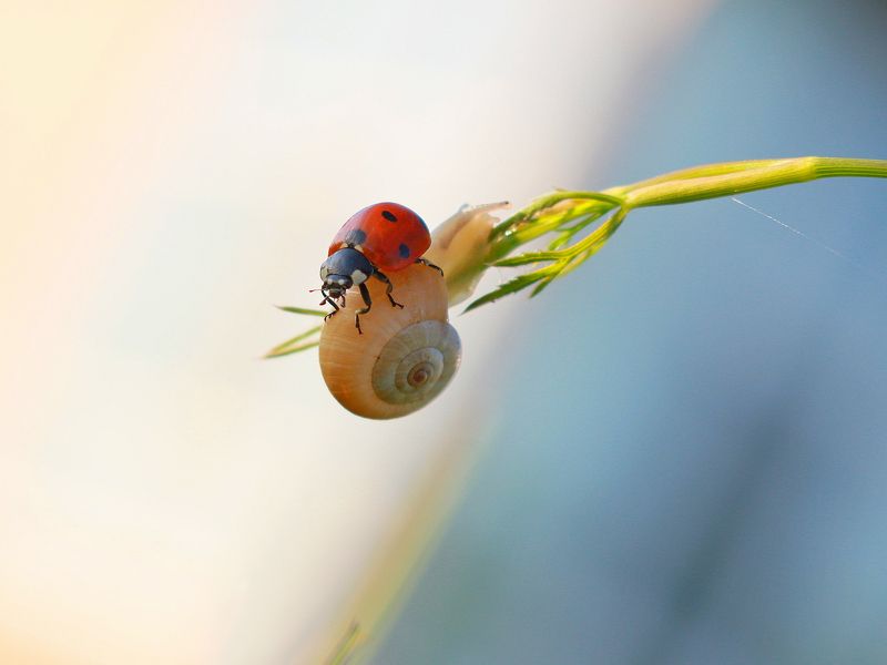 Ранним утром, когда солнышко только показалось из-за горизонта, просыпается мир насекомых. Каждый стремится вскарабкаться как можно выше чтобы поскорее "искупаться" в первых лучах восходящего солнца, а кто-то пользуется добротой соседа.