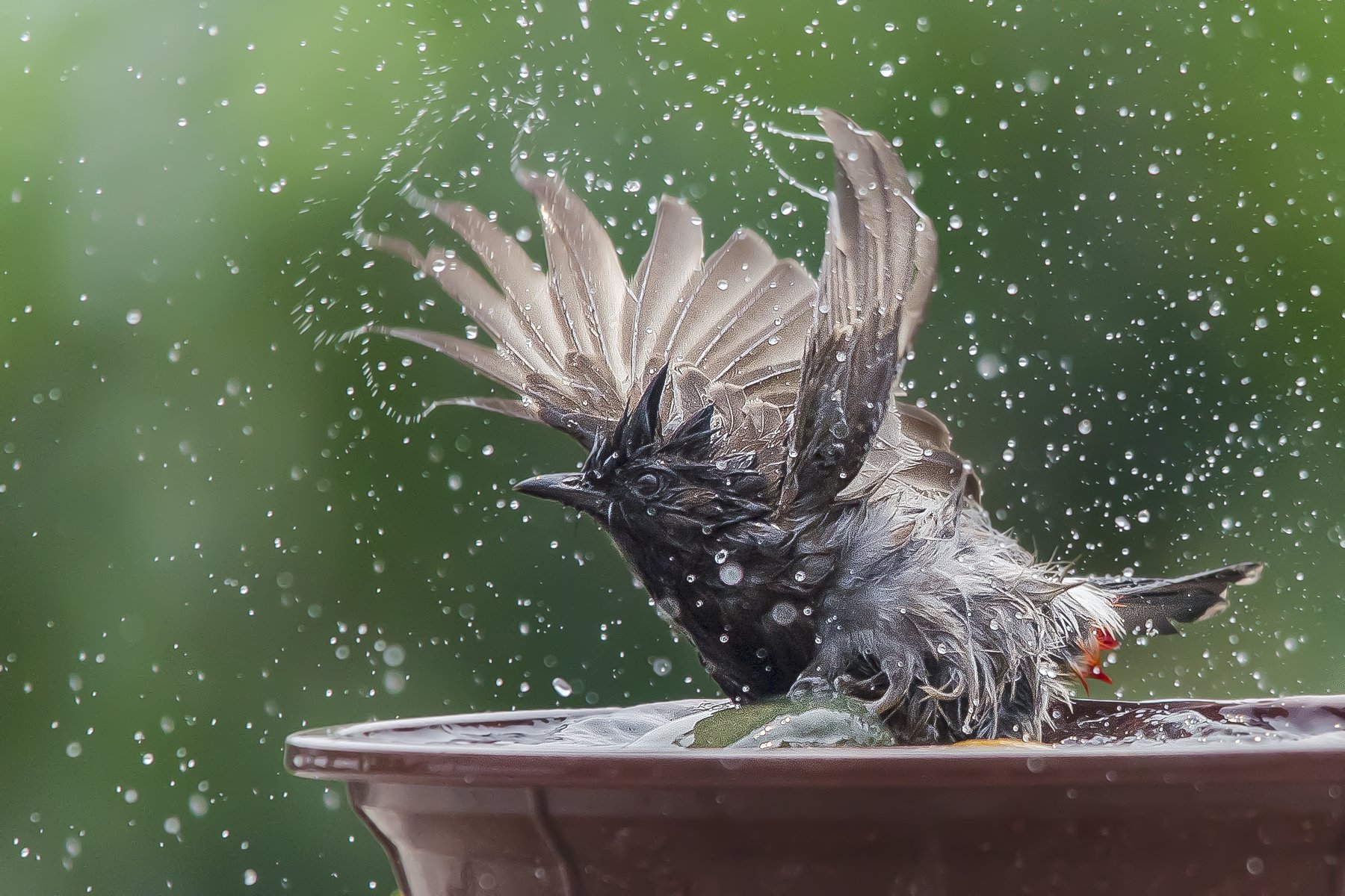 Red-Vented Bulbul enjoying it's bath on hot summer noon. EXIF- f/7.1, 1/2000s, ISO 1250, -0.33eV, 500mm