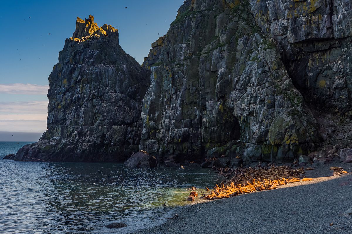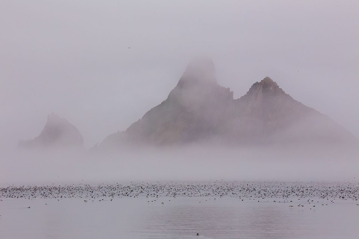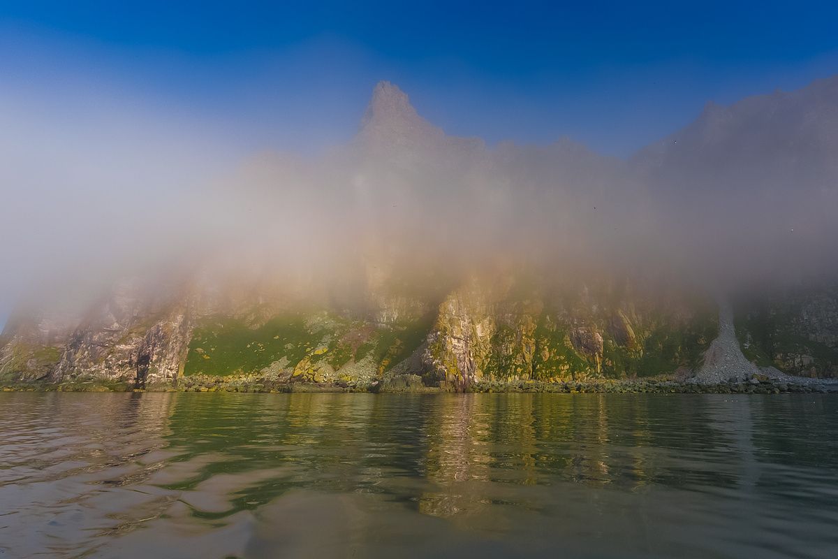 Ямский архипелаг входит в островной кластер Ямского участка Заповедника Магаданский и является одним из ООПТ России. Это весьма труднодоступный регион на севере Охотского моря, представляющий почти вертикальные скалы, уходящие в море. Их часто скрывает туман, омывают сильные подводные течения, бывают шторма. Но там находится самое крупное лежбище сивучей Охотоморья и гнездится по последним подсчетам более пяти миллионов морских птиц. На Ямские острова сложно попасть и еще сложнее сойти на берег, но тем и ценна возможность увидеть это собственными глазами и показать другим людям. Магаданская область, август 2016.