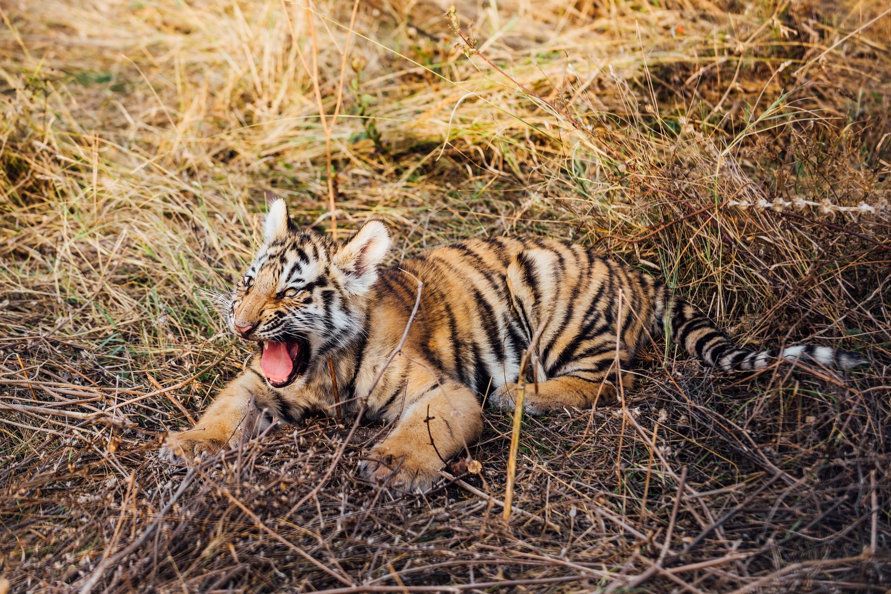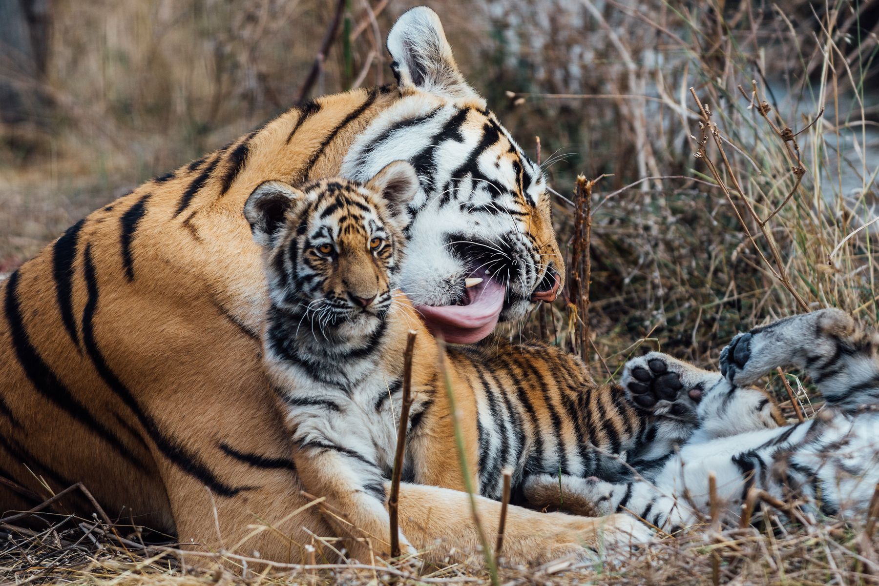 Проснувшись утром в лапах матери, тигренка ждало насыщенное утро: игры с братьями, лазанье по деревьям и, конечно, завтрак!