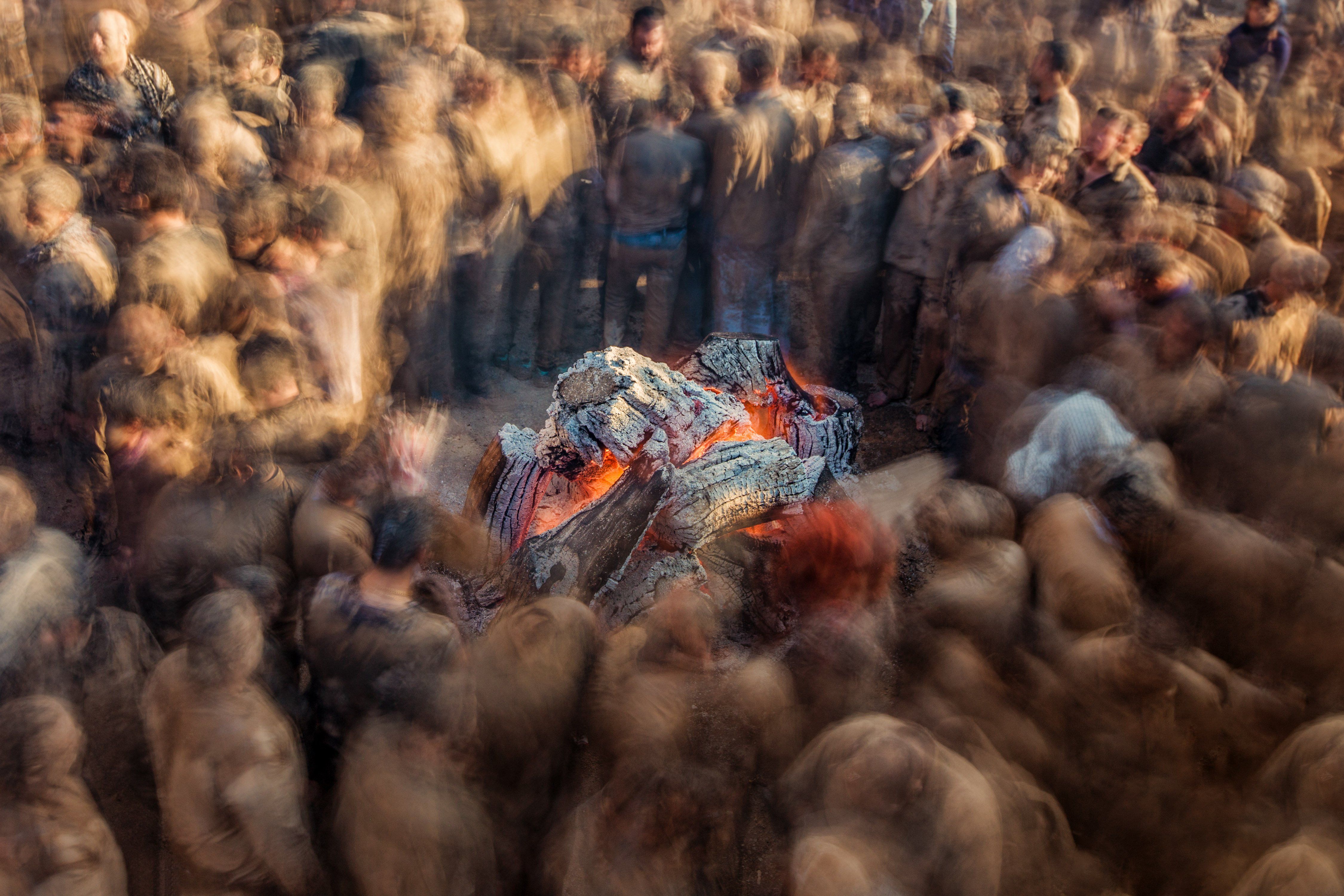 people dive in mud ponds and then stand by fire to get warm and dry .... its their way of mourning for their imam (the grand son of the muslim prophet who died unjustly)