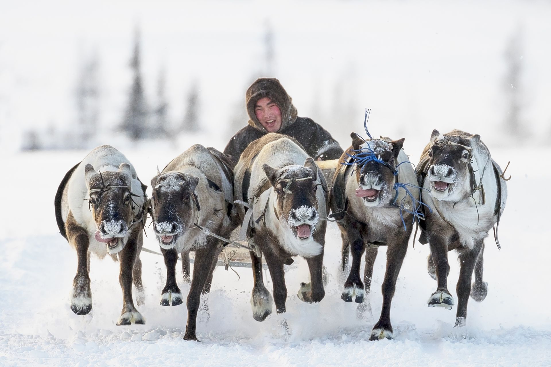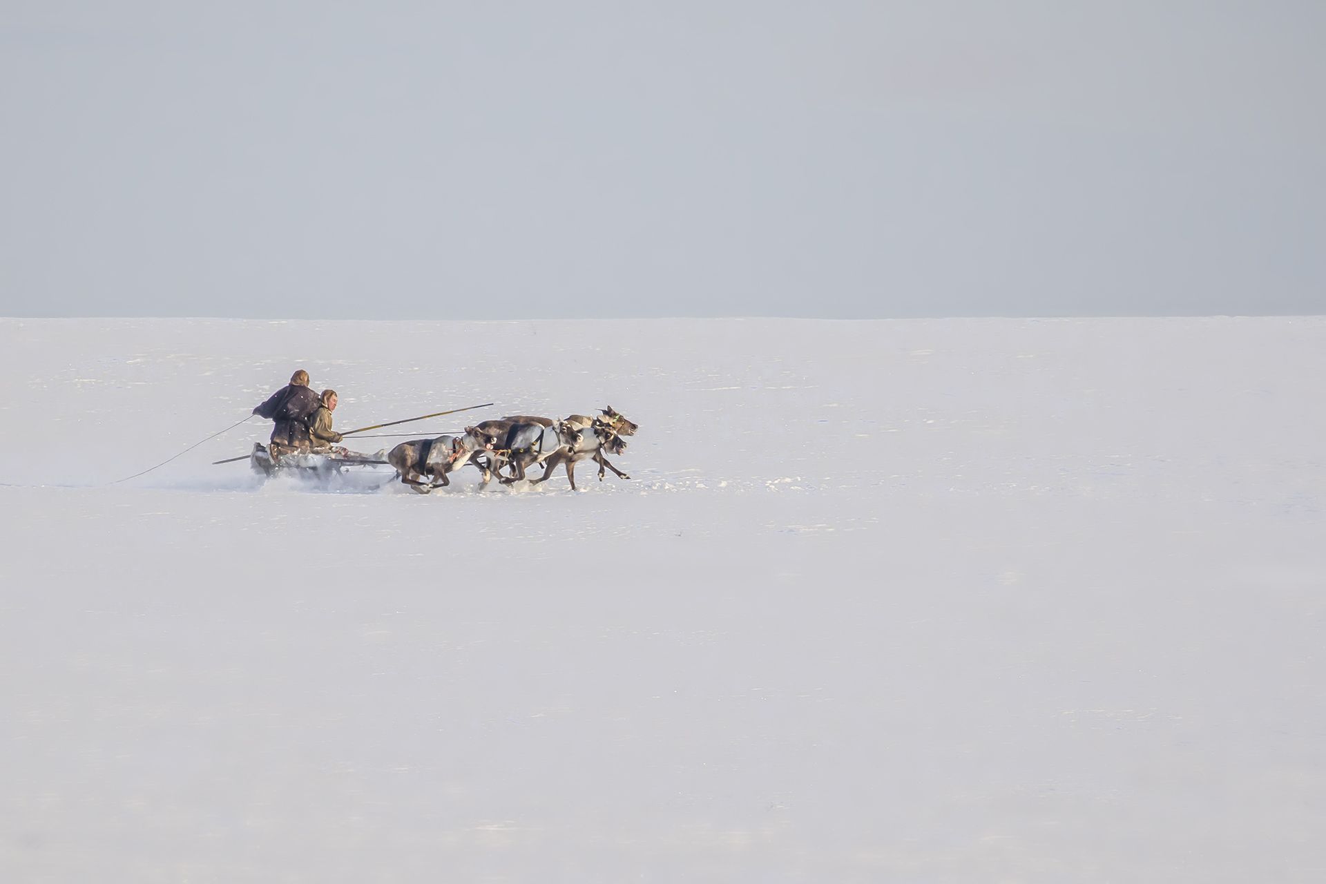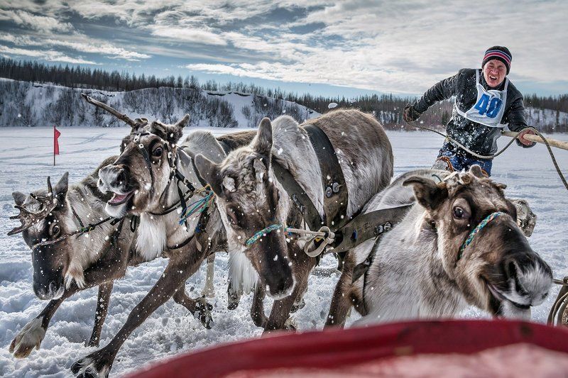 Гонки на оленьих упряжках закрывают праздник День Оленевода, который проводится ежегодно в районных центрах и городах Ямала. Еще доля секунды и упряжка сметет меня вместе с укрытием - красной бочкой, за которой я прятался в поисках удачного кадра... Всё обошлось, ни кто не пострадал.
