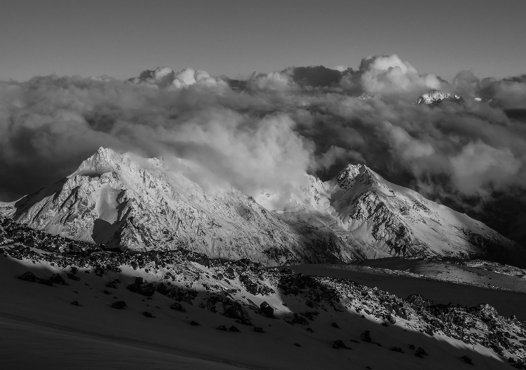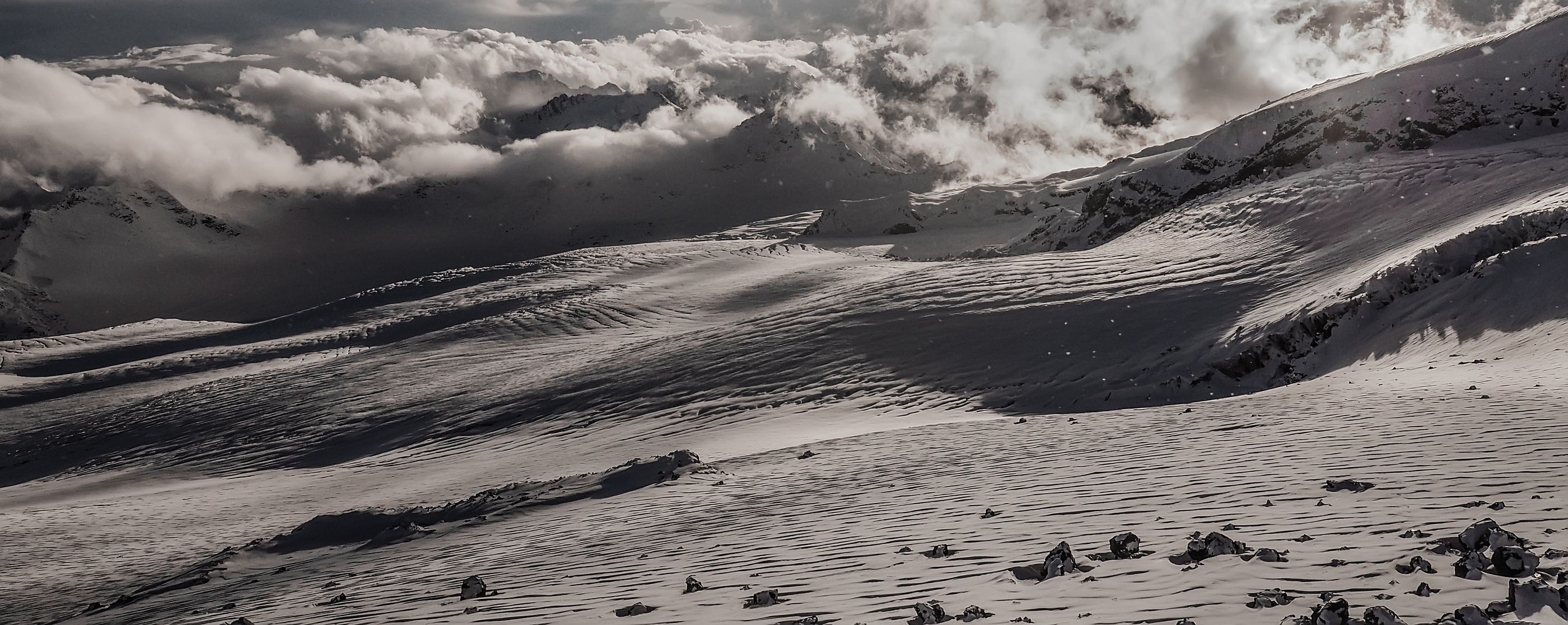 Чем суровее условия в горах, тем фантастичнее рисуются картины. При восхождении на Эльбрус в конце сентября неожиданно наступила самая суровая зима.. пурга, огромные минуса и солнце, показавшееся лишь два раза за 10 дней путешествия, дарят именно те самые незабываемые эмоции и фотографии!