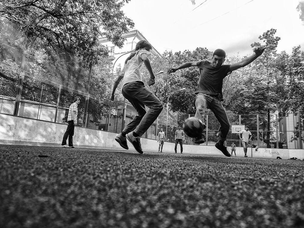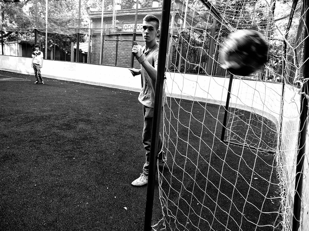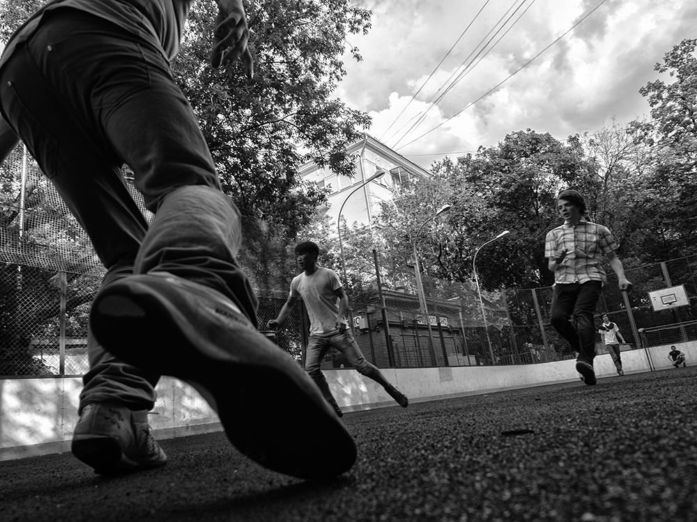 Эпозодические кадры из серии "Дворовый футбол". Идея съемки - показать экспрессию движения объектов съмки, представить, наряду с прямым кадром, необычные ракурсы и композиционное построение, показать ритм. Прим. Серия выстроена по порядку нумерации файлов, а не по результату загрузки. Россия, Москва, © Залман Шкляр