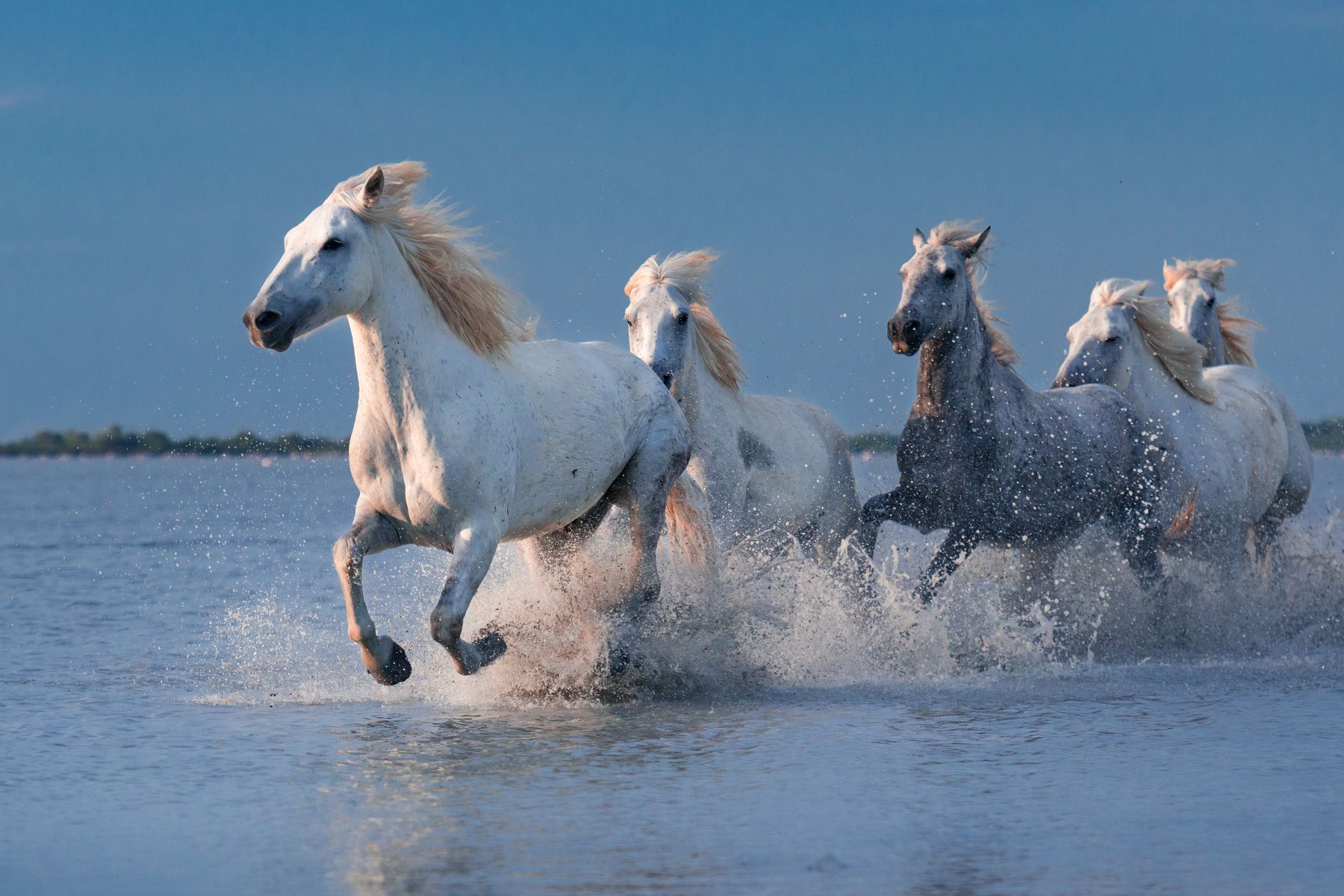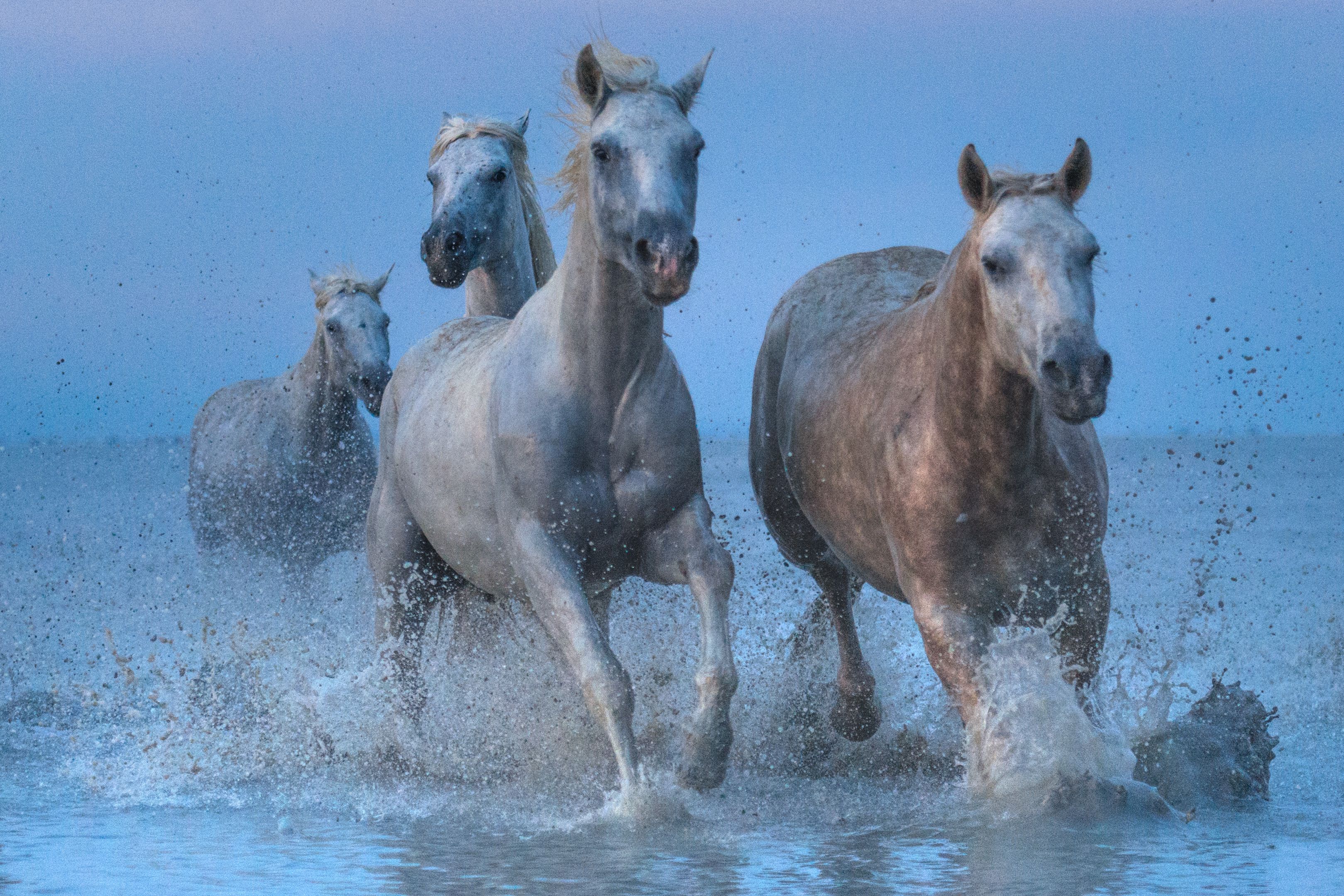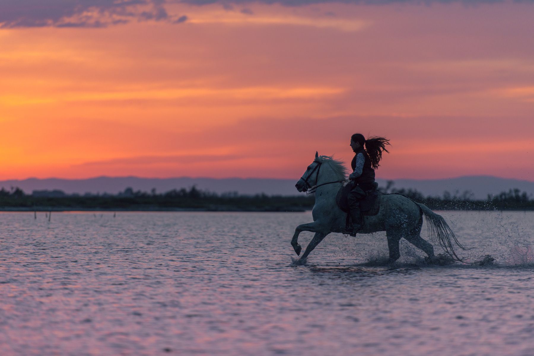 Камарг - это равнинная, местами заболоченная местность на юге Франции, в дельте реки Роны - родина знаменитых белых камаргских лошадей. Камаргу- одна из старейших пород мира. Эти лошадки полудикие, пасутся на камаргских равнинах, покрытых жесткой солоноватой травой. В условиях длительной изоляции и естественного отбора возникли табуны или «манады» диких лошадей камаргу. Климат Камарга весьма суровый, летом - сильная жара, зимой – холодные ветра, дующие с Альп. Этих лошадок ценят за неприхотливость и изумительную выносливость - в день она легко проходит пятьдесят километров. Они не требуют никакого ухода, пасутся на камаргских равнинах, покрытых жесткой солоноватой травой. Порода получила известность лишь в 1968г. Тогда была создана ассоциация заводчиков и под покровительством Национального конного завода в Ниме она стала проводить ежегодный контроль племенных жеребцов. Табуны раз в год сгоняются для ветеринарного осмотра, клеймления молодняка, отбора племенных особей и кастрации выбракованных жеребцов. Белоснежные кони, скачущие по песчаному берегу вдоль дюн или по водным затонам, и поднимающие тучи блестящих брызг – очень романтичное зрелище