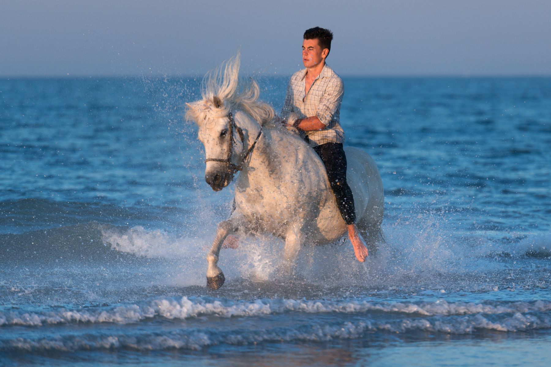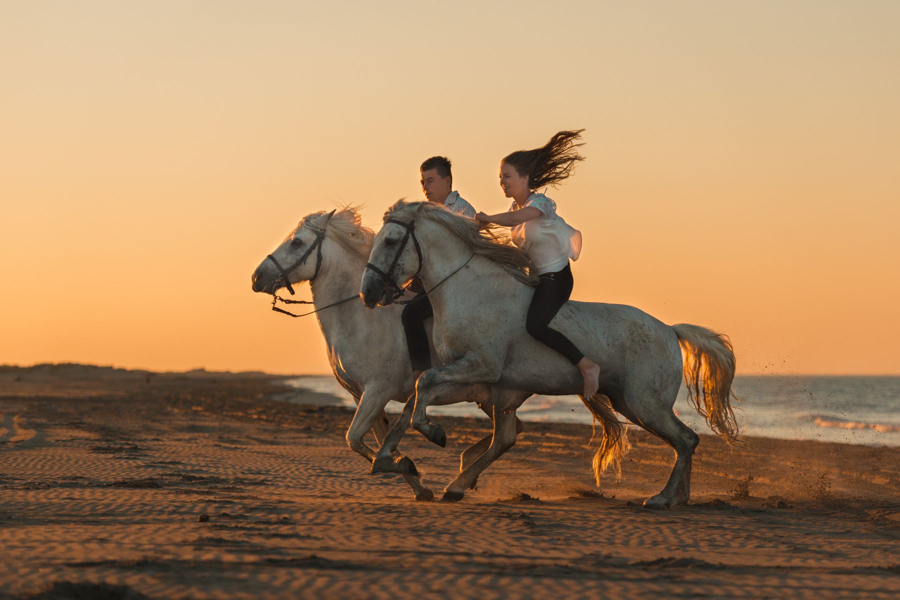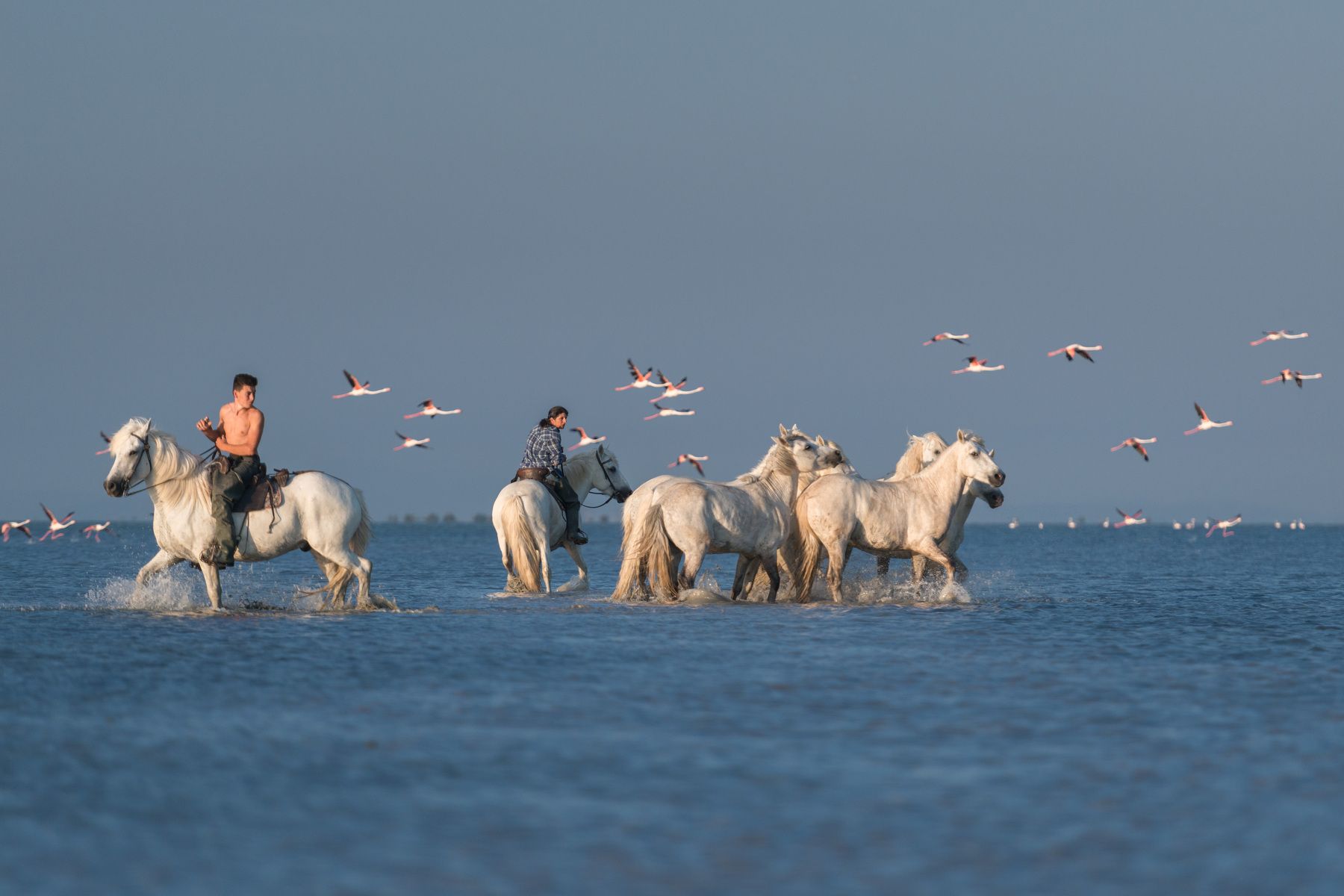 Камарг - это равнинная, местами заболоченная местность на юге Франции, в дельте реки Роны - родина знаменитых белых камаргских лошадей. Камаргу- одна из старейших пород мира. Эти лошадки полудикие, пасутся на камаргских равнинах, покрытых жесткой солоноватой травой. В условиях длительной изоляции и естественного отбора возникли табуны или «манады» диких лошадей камаргу. Климат Камарга весьма суровый, летом - сильная жара, зимой – холодные ветра, дующие с Альп. Этих лошадок ценят за неприхотливость и изумительную выносливость - в день она легко проходит пятьдесят километров. Они не требуют никакого ухода, пасутся на камаргских равнинах, покрытых жесткой солоноватой травой. Порода получила известность лишь в 1968г. Тогда была создана ассоциация заводчиков и под покровительством Национального конного завода в Ниме она стала проводить ежегодный контроль племенных жеребцов. Табуны раз в год сгоняются для ветеринарного осмотра, клеймления молодняка, отбора племенных особей и кастрации выбракованных жеребцов. Белоснежные кони, скачущие по песчаному берегу вдоль дюн или по водным затонам, и поднимающие тучи блестящих брызг – очень романтичное зрелище