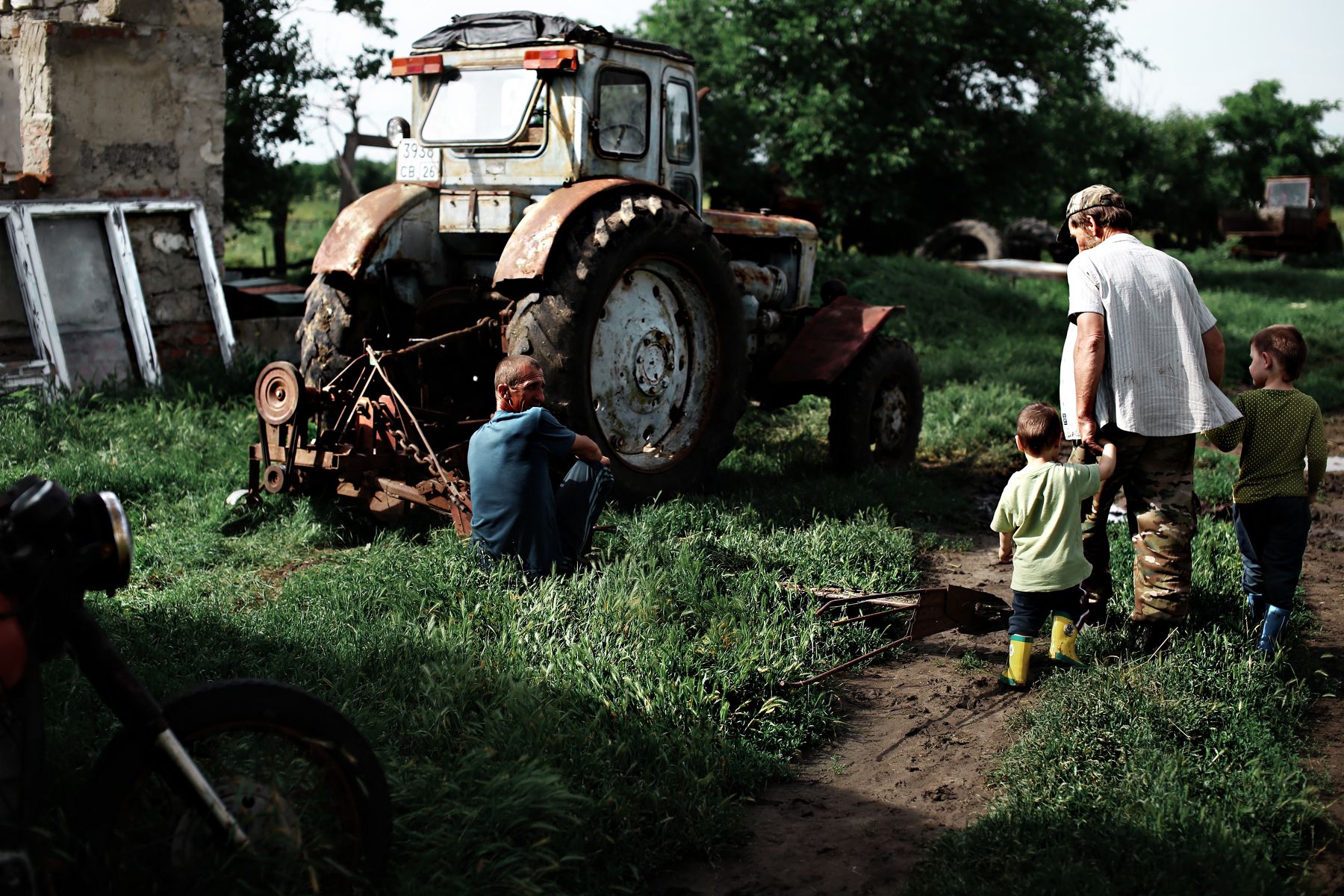 Этот кадр был сделан весной.Я гулял с фотоаппаратом по селу в поисках интересных кадров. Эта женщина стояла у забора и гладила кошку, которая мурлыкала и тёрлась о плечо хозяйки.