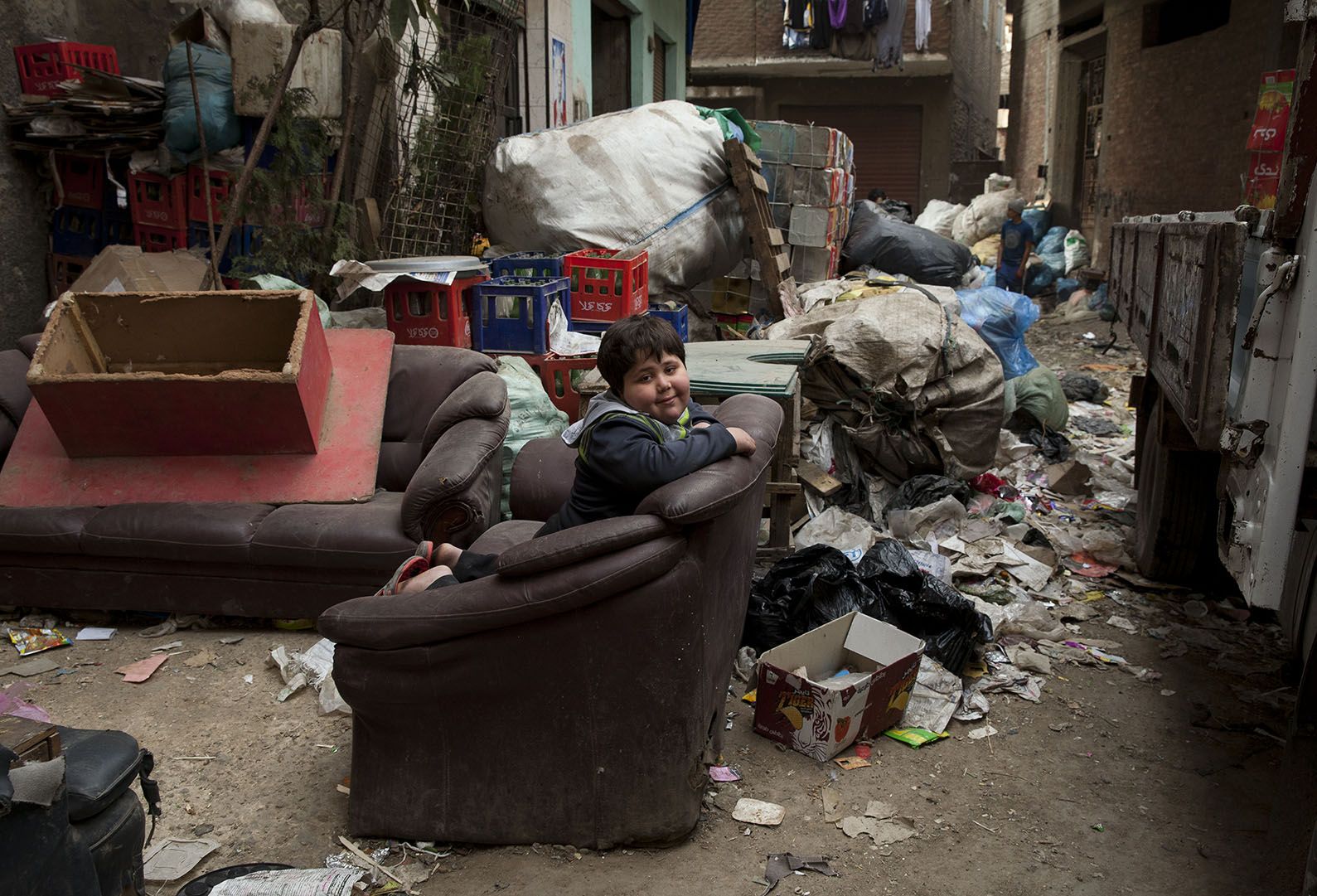 This photo was taken at an Indian brick kiln where the women were transferring bricks from the kiln to he truck standing near by. They were carrying 8-10 bricks on their head at a time. The working condition was quite tough. Dust, coming out from the stacked bricked, was making breathing difficult. I have tried to capture a candid moment of this activity.