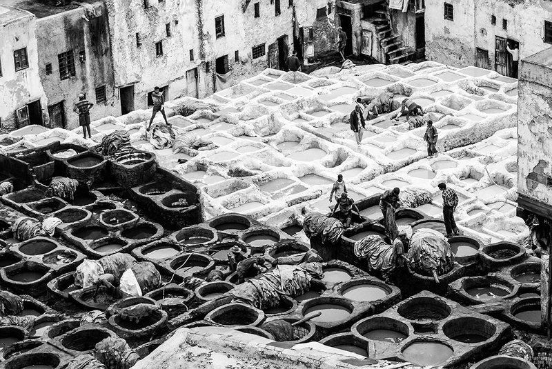 El desierto, la actividad medieval de teñir el cuero, la carretera,