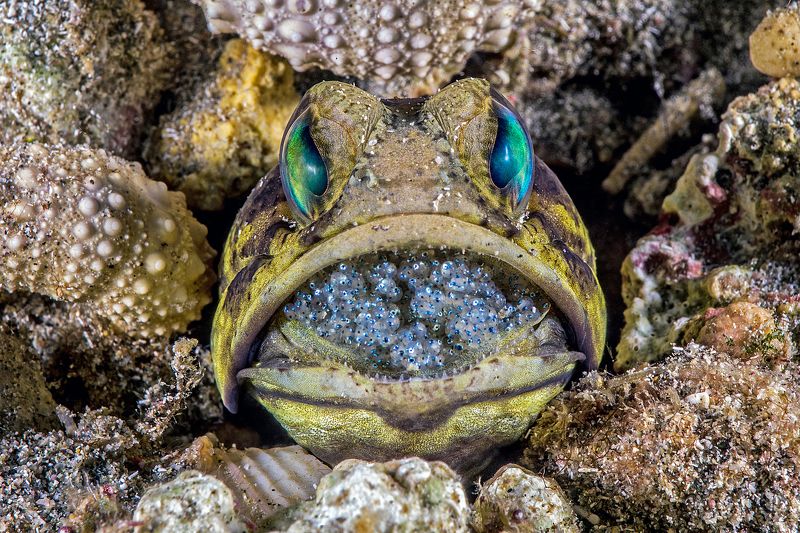 Male banded jawfish with well developed eggs.Crash Boat, Aguadilla, Puerto Rico.
