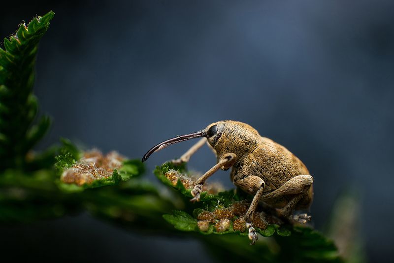 The picture was captured in Romania, Gheorgheni, Csiky garden - arboretum. It was a very special occasion for me, because it was the first time to met with Nut Weevil. The insect's specialty is the long snout. The species name of this Nut weevil is Curculio nucum. Technical specifications: Nikon D5300, Nikkor 18-55mm f/3.5 – 5.6 (Reverse lens), 1/200s, iso 100, F/11, Homemade flash diffuser, hand-held.