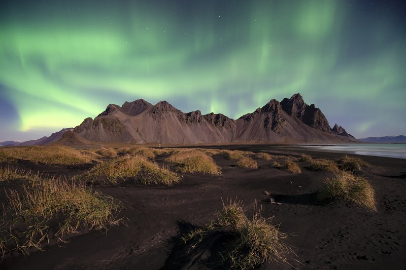 Islanda. La pioggia incessante dei giorni precedenti ha fatto si che sulla spiaggia di Stokksnes si formassero queste piccole pozze d’acqua. Inoltre trovandosi riparate dalle dunette di sabbia circostanti, queste pozze erano completamente ferme; il vento non increspava l’acqua e cosi invece di una pozza sembrava di stare davanti ad uno specchio! A contornare tutto questo scenario un piccolo arcobaleno in lontananza e un fotografo pronto ad immortalare la scena.