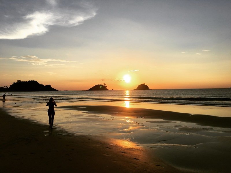 Sunset in Nacpan, El Nido, Palawan. I am focusing on taking photo of the sunset in the island but acidentally there is a foreigner lady who is also taking photos of it.