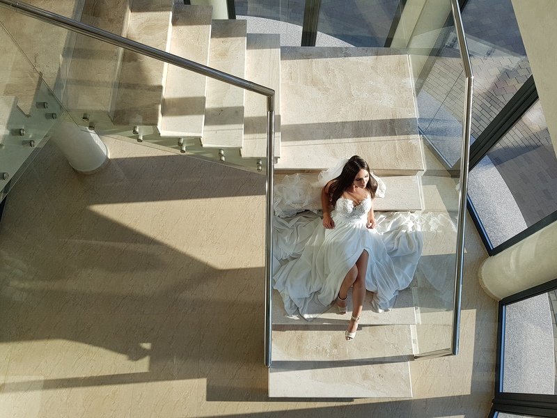 Вечірнє світло покоряє всіх художників своєю красою. Так і було у нашому випадку, низьке світло зробило свою роботу, залишилось тільки побудувати кадр. Весільна фотографія від Павла Товтина