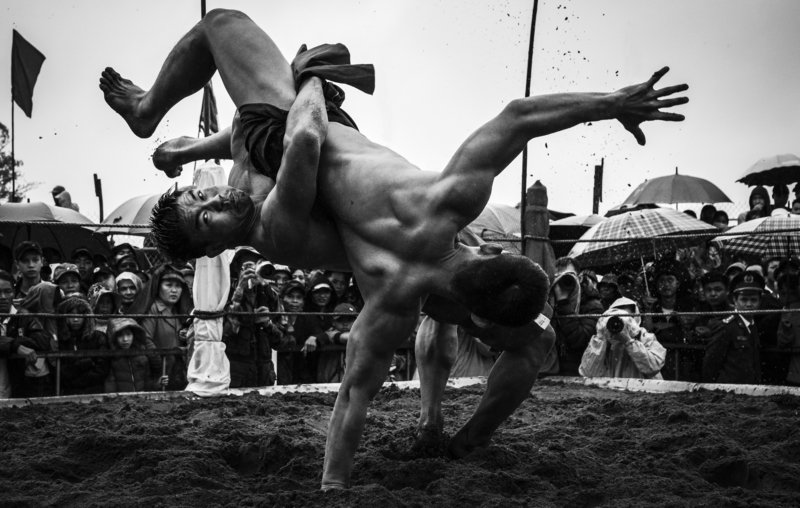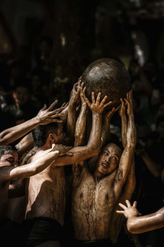 The mud festival in Van village (Viet Yen district, Bac Giang province - Viet Nam) is a unique cultural and sporting event. The rules of the play of the mud flap are organized as follows: 16 healthy young men join the guild called the bridge divided into four armor (each armor four), the four armor are divided into two teams (each side eight people) are called upper and lower armor.