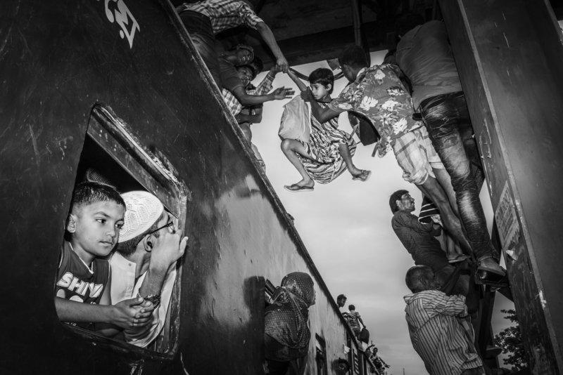 Eid, one of the biggest religious festivals for Muslims in Bangladesh. Leaving their family in the village, most people live in Dhaka to earn their living. For this festival, they get a long vacation and want to go to their village to celebrate Eid with their families. But most of the time this journey becomes a traumatic one. To ensure they get to the right place during their travels, they sometimes put their lives at stake. This is the true but ‘harsh reality’ behind the picture.