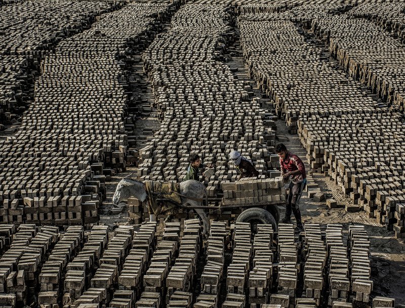 يعمل مع اخوته في معمل طابوق . العراق محافظة ميسان : لم ألتحق بالمدرسة أصلا بعيدا عن مركز محافظة ميسان العمارة، ترتفع مداخن معامل الطابوق لتملأ سماء القراء الطبر)متسببة بالكثير من التلوث البيئي. تنتشر معامل الطابوق في هذه المنطقة، يعمل الصبي )12 عاما( في معمل هوه اخوته منذ ساعات الصباح الباكر وحتى المساء ولم نجد سوى هذا العمل المرهق الذي وفّر لنا المسكن في بيت طيني وكذلك العمل لي اخواني الإثنين"