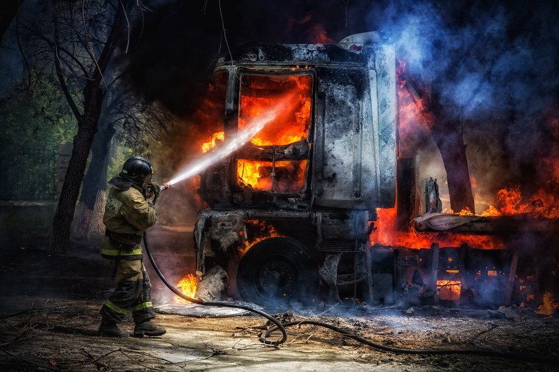 Пожарные это одна из самых отважных служб в мире! Этот снимок не является постановочным, это реальный пожар Большегрузной машины в центре города, к счастью никто не пострадал Fire is one of the most courageous service in the world! This picture is not staged, it is a real fire of a Heavy truck in the city center, fortunately no one was hurt