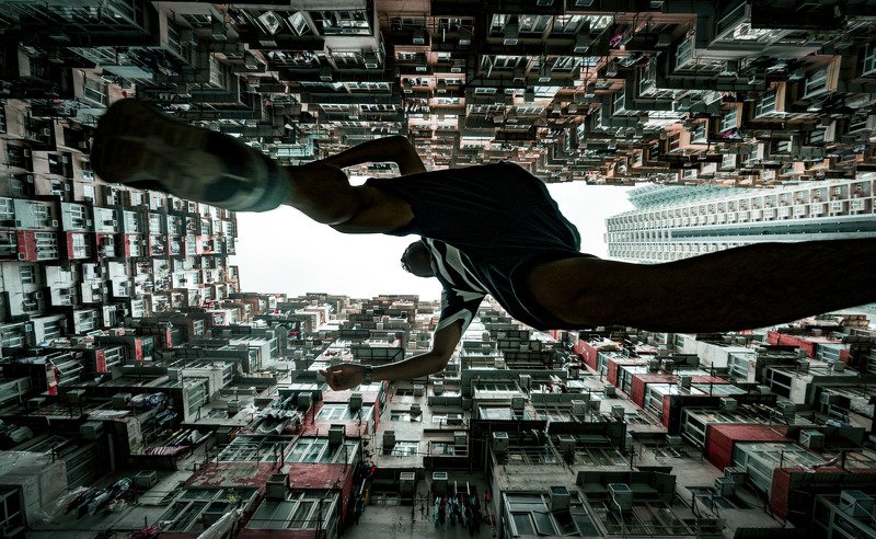 Yik Cheong Building or they call it Monster building is one of the photographic site in Hongkong. I was strolling around in this residential building when I saw one tourist and I asked him to jump over me so I can frame him in the middle of my shot.