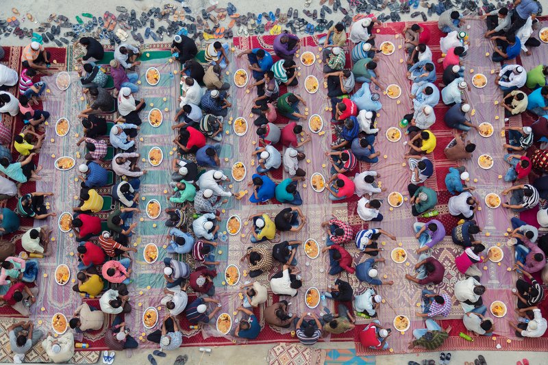 On Ramadan, all Muslim people finish their fast. Iftar or Fatoor is the evening meal with which Muslims end their daily Ramadan fast at sunset. Muslims break their fast at the time of the call to prayer for the evening prayer. The daily fast during Ramadan begins immediately after the pre-dawn meal of Suhur and continues during the daylight hours, ending with sunset with the evening meal of Ifthar. (Manama - Bahrain).