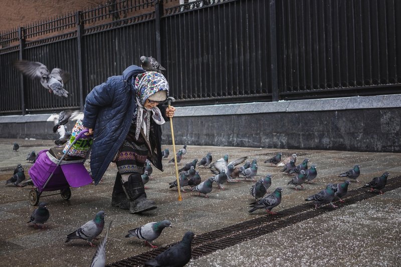 In the winter in St. Petersburg a lot of snow. Roofs of houses are covered with a white snow blanket. It is very beautiful, but for city life it creates many difficulties for clearing streets and roofs of houses. It's nice and safe at the same time. When these snow blocks fall on the head of passers-by, this is life-threatening. Before the city authorities is a big task to clear roofs from snow. Do this real, bold men.They risk their lives every day for the lives of others. Many birds do not fly south. People help them survive the winter and feed them. Even in schools, children are taught how to make feeders for birds. Many of them live in urban parks. There is very lively! Favorite activity - to make a snowman! City women of fashion do not frighten. They always look stylish even when they walk with their pets in the park. Locals have become accustomed to such weather conditions and live their lives. After work, everyone rushes home.
